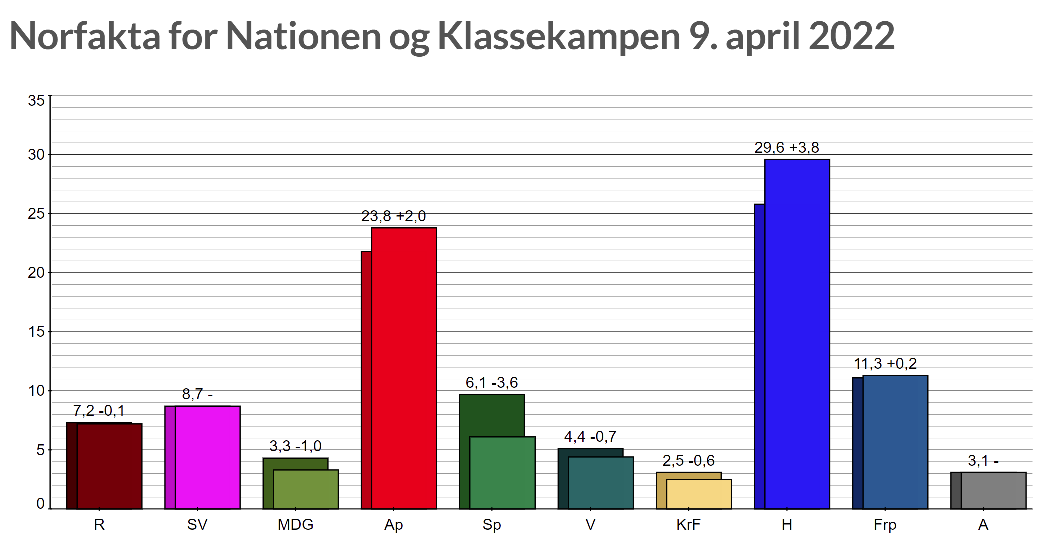 Equinox Skrevet 10. april 2022 #5 Skrevet 10. april 2022 Hadde nå enda bare SP kommet seg over til borgerlig side så blir det enda bedre. 1