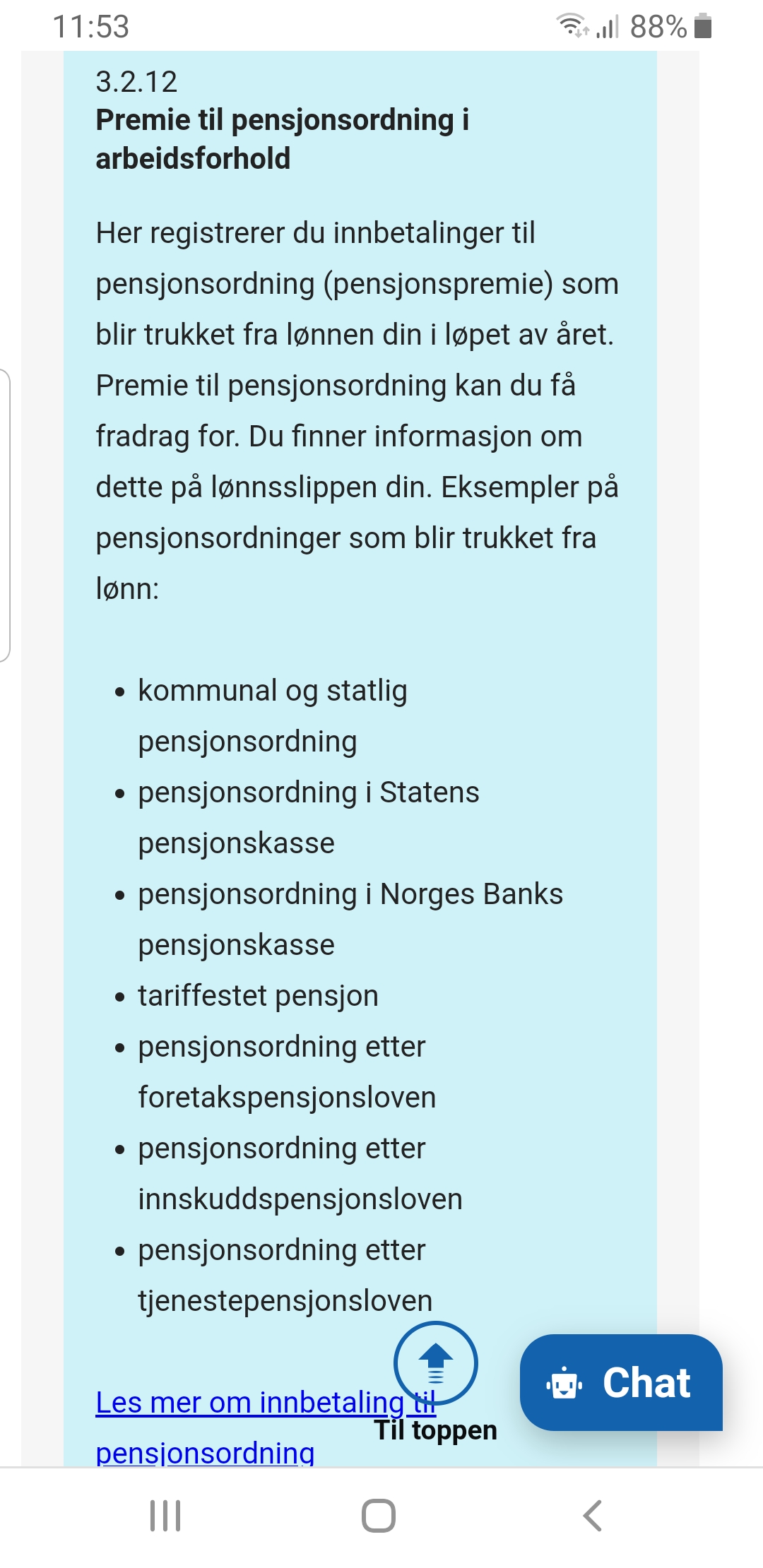 Gjest Skrevet 11. april 2022 #13 Skrevet 11. april 2022 Bullabu skrev (Akkurat nå): Er ikke det med i minstefradraget? Ok...trekkes det 2 prosent av mine arbeidsavklaringspenger årlig? Noen som vet?🙈så jeg skal føre opp de 77 000 kr. som de har trekt fra min lønn til pensjonssparing i statens pensjonskasse ? Jeg tviler stekt på at det er trukket 77 000,- til spk på aap. Jeg blir trukket ca. 10 000,- til spk av lønn på 550 000,-. Har du 7 ganger så mye i aap? Jeg tror heller ikke det blir trukket pensjonspremie på aap til spk, men det skal komme fram på lønnsslipper og årsoppgave.