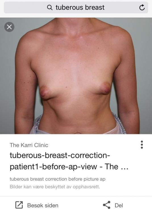 AnonymBruker Skrevet 11. juli 2022 #2 Skrevet 11. juli 2022 Hei! Jeg har hatt operasjon med tuberøse bryster. 1x «vanlig» operasjon med innlegg, så 2xoperasjon m/eget fett og til slutt å minimere areolaene. De ser fremdeles ikke ut som normale bryster, dessverre. Men mine var ekstremt misformet (ikke som bildet over - hva er galt med de? 😅) Anonymkode: f0fb5...730