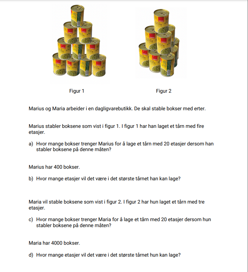 AnonymBruker Skrevet 24. mai 2022 #2 Skrevet 24. mai 2022 I etasje 3 (fra toppen) blir det 6 og ikke 5 bokser, fordi man ser hver etasje blir trekantet med gradvis en bokser mer, og en trekant med 3 bokser på hver side må inneholde 6 bokser. Du må altså bytte ut tallet 5 med 6 (I tilfelle du heller ikke får opp selve regresjonen: du må markere alle tallene i regnearket, og velge regresjonsikonet som dukker opp helt øverst nest til venstre. Men antar det ikke er spm siden du har klart de andre) Anonymkode: cc8ab...18a