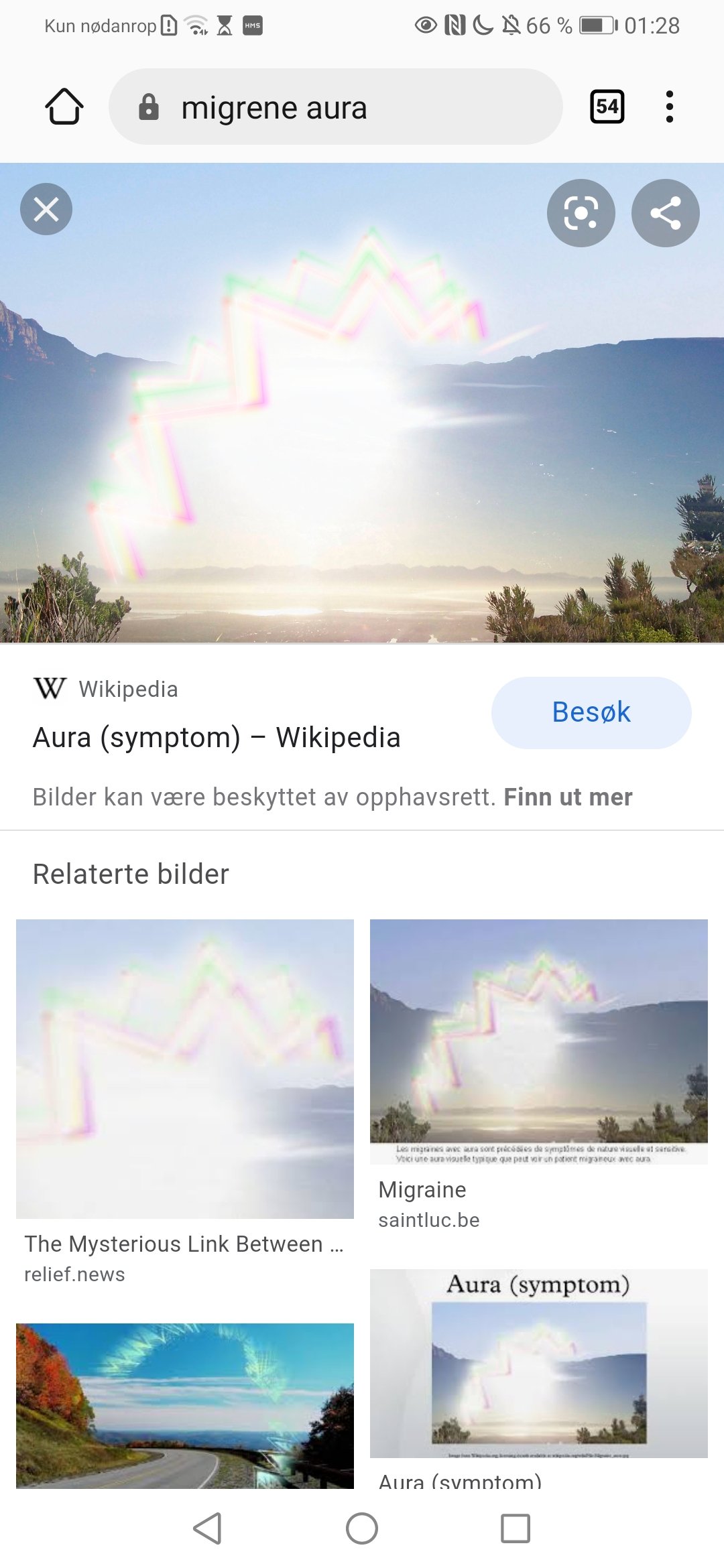HøOmPø Skrevet 13. juni 2022 #16 Skrevet 13. juni 2022 Får aura I ca 20-30 minutter før det går over i migrene. Diamanter som glitrer i masse farger, og som til slutt dekker over have synsfeltet.