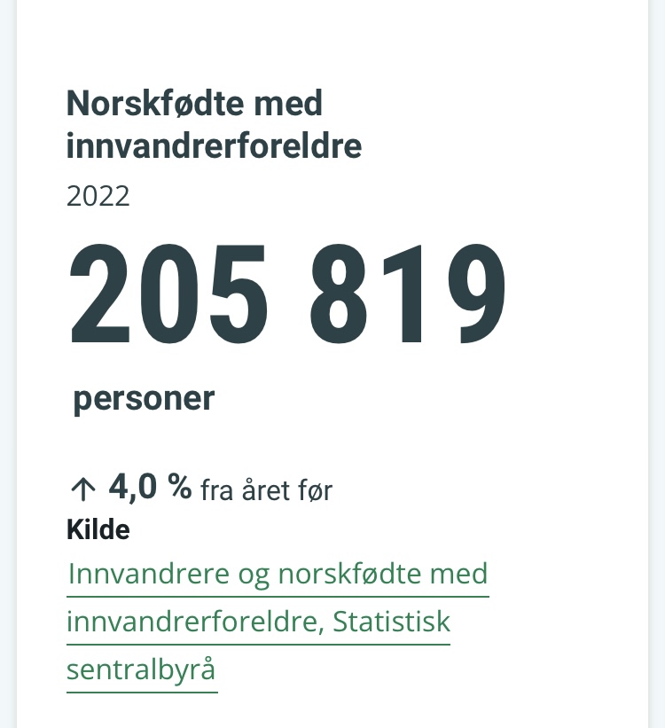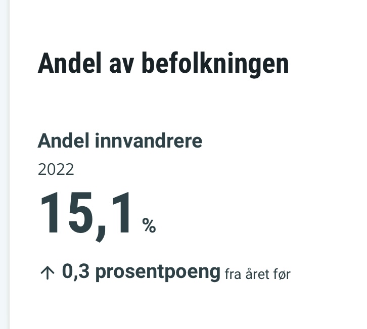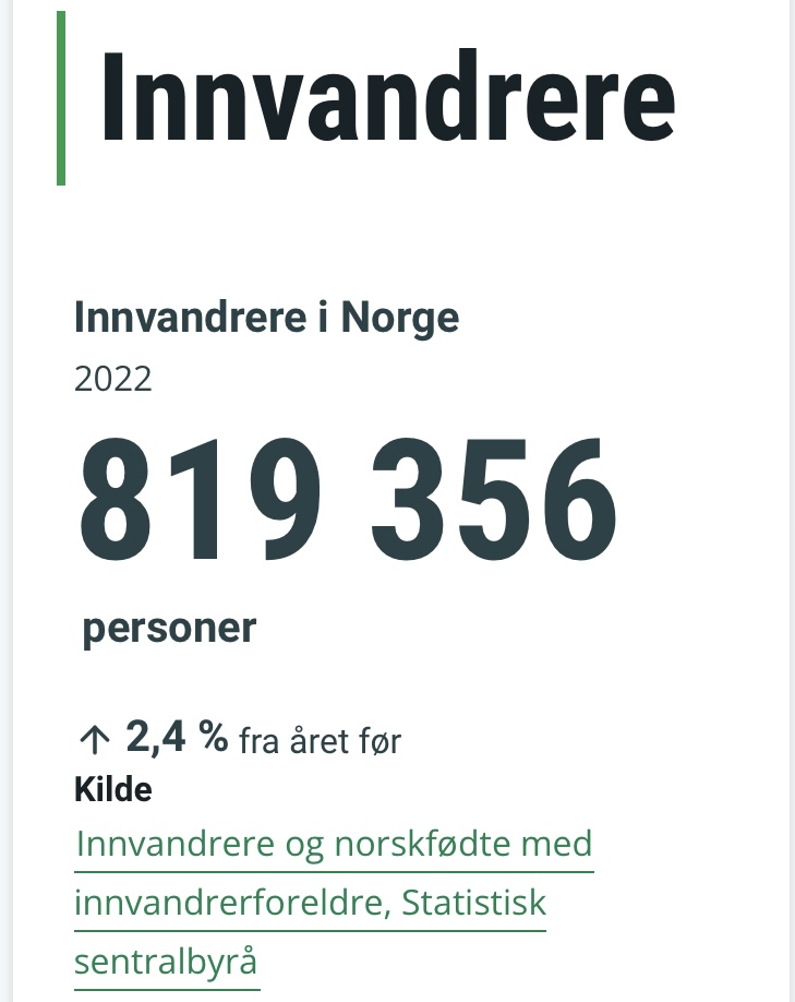 AnonymBruker Skrevet 18. juni 2022 #13 Skrevet 18. juni 2022 A-hunter skrev (23 minutter siden): Jeg finner dem ikke opp. SSB skriver at de ikke teller innvandrerbefolkningen, bare direkte innvandrere og barn av to direkte innvandrere. Det er selvsagt ikke hele innvandringsbefollningen. Hvorfor linker du til tall du ikke forstår? Hva er det du teller, da? Og har du en link til disse tallene dine? Hva definerer du som en innvandrer i dette tallmaterialet ditt? Anonymkode: e9c0e...f35