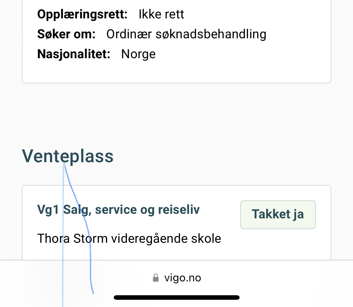 AnonymBruker Skrevet 9. juli 2022 #2 Skrevet 9. juli 2022 Ja det kan faktisk skje at du ikke kommer inn, så lenge du ikke har opplæringsrett så kommer det da selvsagt ann på kapasitetet. De med opplæringsrett kommer jo før deg i køen.Men hvorfer fikk du ikke hjelp av rådgivere når du gikk på vgs sist så du kunne ta vgs over lengre tid f.eks Anonymkode: 85c96...048 1