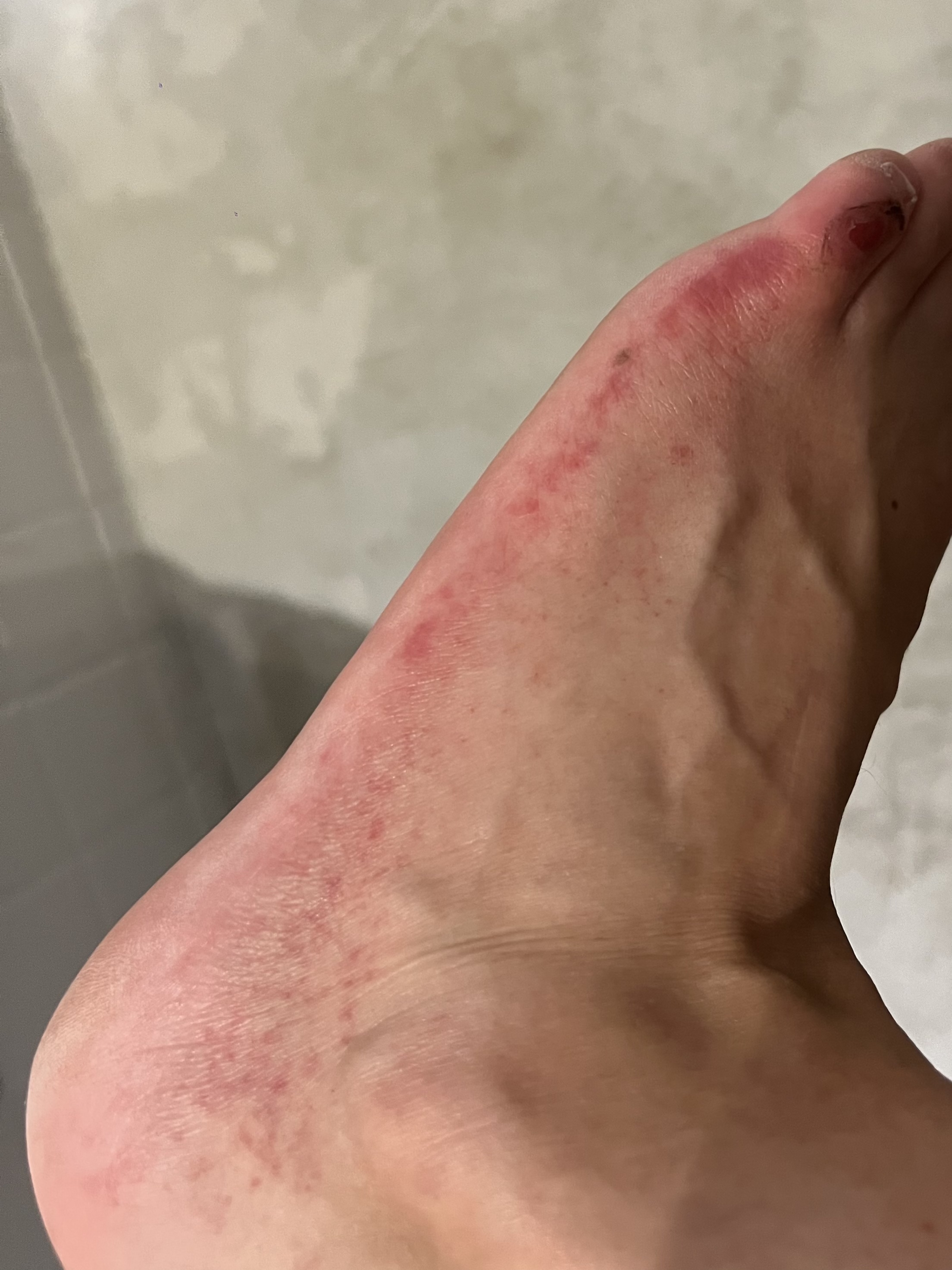 AnonymBruker Skrevet 12. august 2022 #1 Skrevet 12. august 2022 Datteren min (18) har fått et gnagsår på lilletå samt dette utslettet. Hun føler seg ikke syk. Det klør ikke. Hun tror utslettet kommer av en trang sandal, og at gnagsåret kom etter utslettet men er ikke sikker. Bildet ble tatt for et par dager siden og det har blitt litt verre vil jeg si. Det er ganske rødt rund lilletåa og ser betent ut. Hun sa ikke noe til meg før i går kveld så det er derfor jeg ikke har ‘reagert’ før. Har renset med noe lignende pyrisept nå. Bør vi kontakte lege? Er i syden men reiser ikke via noe byrå. Anonymkode: 65d9d...767