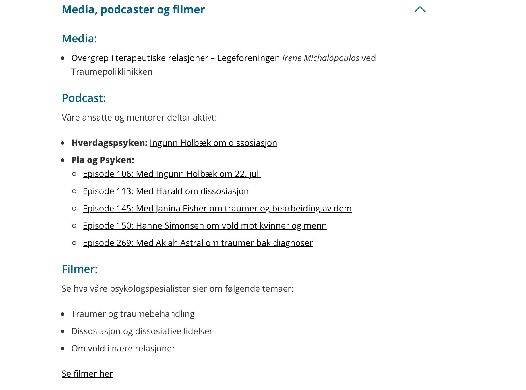 Ninaen Skrevet 30. april #6821 Skrevet 30. april https://www.modum-bad.no/aktuelt/45674-2/ https://www.modum-bad.no/dagtilbud/traumepoliklinikken-modum-bad-i-oslo/#behandling (bilder fra siste link) 1 2