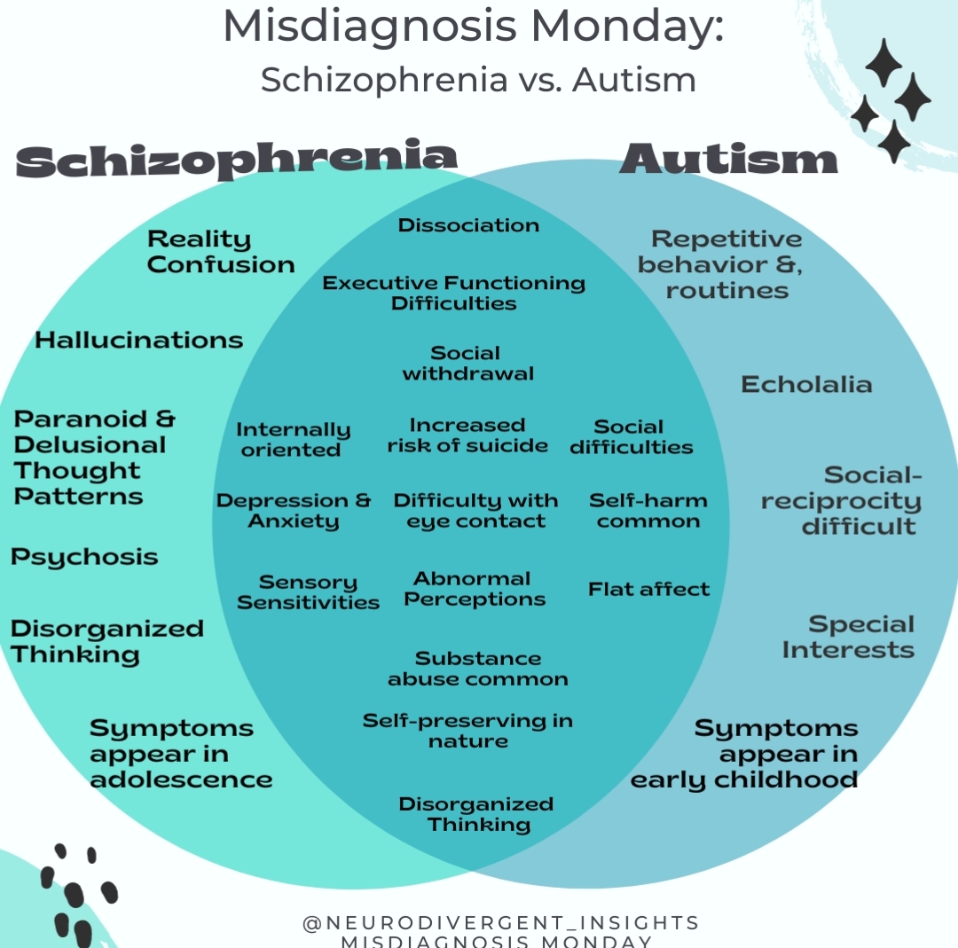 NiceOrNothing Skrevet 14. september 2022 #12 Skrevet 14. september 2022 AnonymBruker skrev (26 minutter siden): Når jeg leser om autisme og schizofreni så ser jeg at de har utrolig mye like symptomer. Så å si alle de negative symptomene på schizofreni er også vanlige symptomer ved autisme. Alle disse symptomene er symptomer som er vanlig ved begge diagnosene: Manglende ansiktsmimikk, monoton stemme, manglende spontan tale, sosial tilbaketrekning og isolasjon, fattig språk, dårlig emosjonell kontakt, redusert kroppspråk, perservasjon for å nevne det jeg kommer på nå. Spørsmålet mitt er hvordan vet man hvilken diagnose man har og hvordan vet man om man ikke har begge til og med? Anonymkode: 143a2...b59 Kjenner en med begge de diagnosene . Inkludert bi-polar. Fikk autisme -diagnosen først .