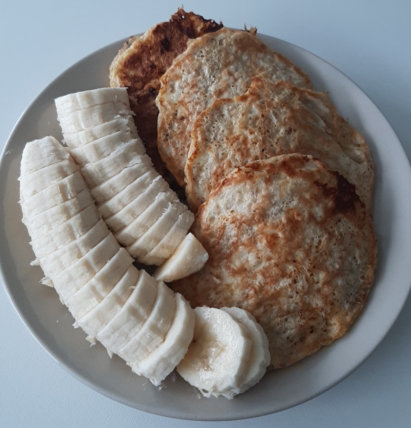 Jeg var så sulten at jeg glemte å ta bilde før jeg tok en bit. Bananpannekaker. :)