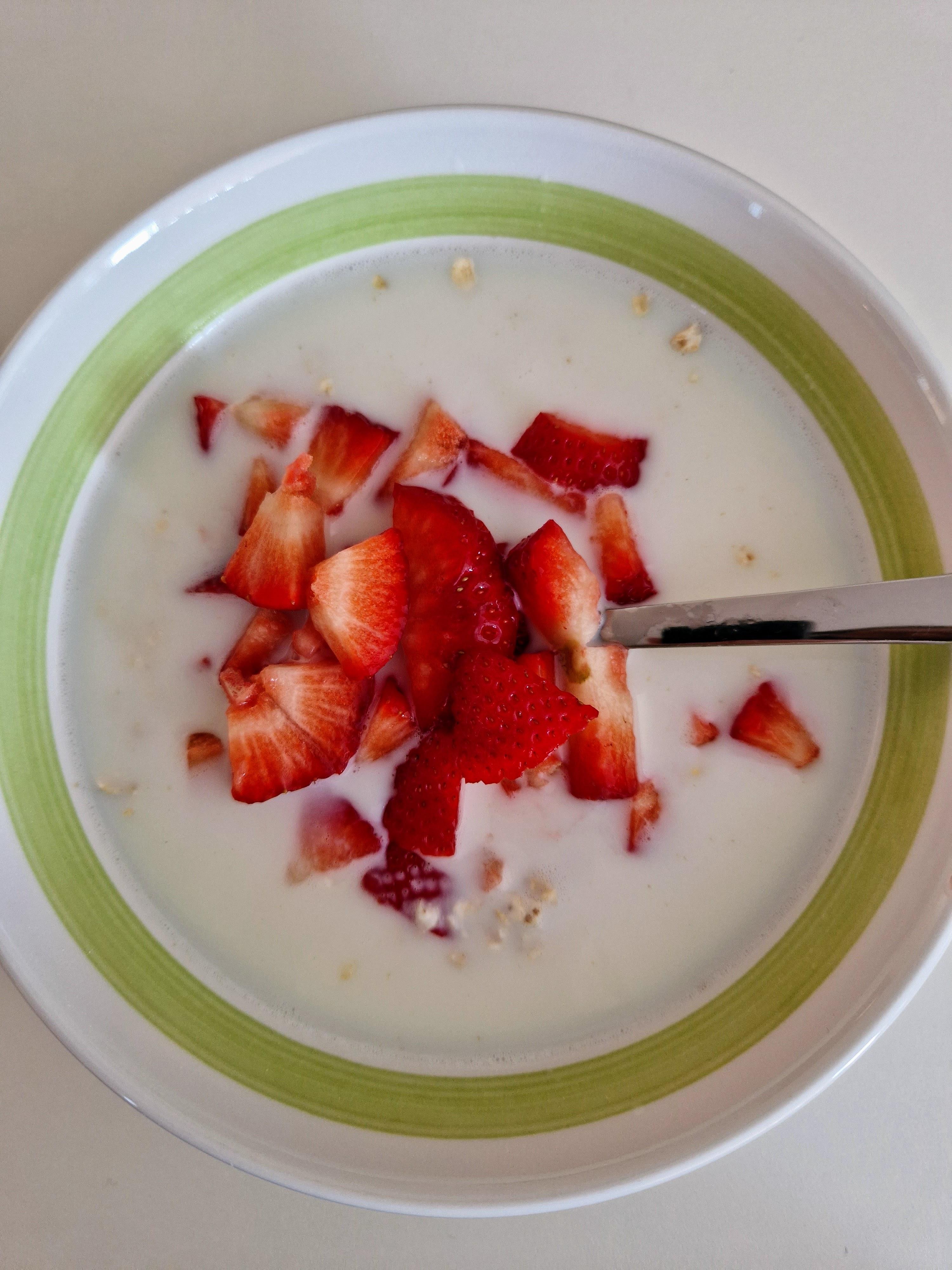Havregryn og melk med jordbær :)