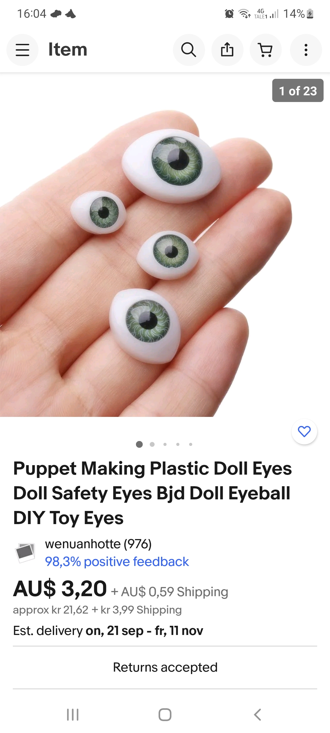 AnonymBruker Skrevet 5. november 2022 #1 Skrevet 5. november 2022 Noen som vet om det er noen norske nettbutikker som selger slike dukkeøyne? Anonymkode: 338f8...b05