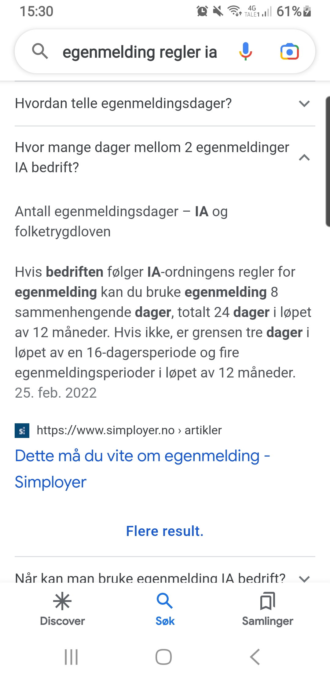 AnonymBruker Skrevet 18. desember 2022 #1 Skrevet 18. desember 2022 Merk: jobber i IA-bedrift. Altså ikke 4x3 egenmeldinger i året. Forstår ikke helt reglementet. Skjønner at jeg kan bruke 8 dager sammenhengende osv, men i forrige uke brukte jeg en dag. Tenkte ikke videre over dette, da jeg så godt som aldri er syk, men nå er jeg syk igjen. Pleier ikke være mulig å få tak i fastlegen før arbeidsdagen starter i morgen. Kan jeg bruke ny sykemelding i morgen selv om det ikke har gått 14 eller 16 dager siden sist? Har så langt i år altså brukt en dag, så har mange dager til overs. Men må det gå så og så mange dager mellom hver sykemelding når det er IA-bedrift? Anonymkode: c45be...550