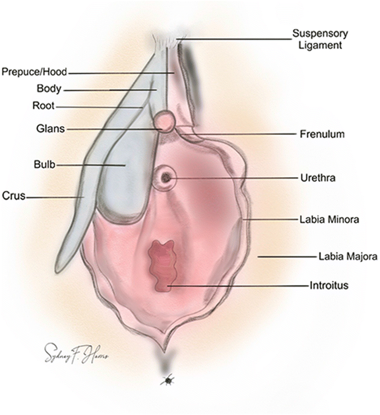 Frkego Skrevet 14. april 2023 #15 Skrevet 14. april 2023 (endret) Bamseklemmer skrev (19 minutter siden): Det er nok "forhuden" "Hetta" "Prepusen" du berører/jager over klitthodet. Da berører jo "Strengen" " Frenulumet" under klitthodet seg, det kan nok føles deilig ja☺️ Frenulum med nervetråder, har vi alle under tunga også. Klem-Slipp- metoden på frenulumet øker jo blodtilførselen, som gir hard ereksjon. Og den metoden fungerer så godt, at enkelte kvinner får orgasme av det. Og som du skriver.. den jagingen med hetta, blir jo det samme som forhuden glir frem og tilbake på penisen til menn.. kjempedeilig💫 Bildet her forklarer jo en del: Nei, det er ikke hetta, men en streng som går ut fra klitorishodet (altså en del av klitoris) og oppover mot skambeinet. På bildet her vises det som «body». Det er ikke det samme som frenulum. Det er som en hard sene og den kan vikles fra side til side. Det varierer vel fra kvinne til kvinne hvor stor, lang og følsom den er, men hos meg er det stimulering av den som gir mest nytelse. Altså, direkte stimulering av klitoris, men ikke klitorishodet. Hetta er bare hud og ligger over klitorishodet. Jeg berører altså området ovenfor klitorishodet og hetta. (bilde hentet fra https://www.researchgate.net/figure/Anatomy-of-the-clitoris-and-vulva-Illustrator-Sydney-F-Harris_fig1_351610752) Endret 14. april 2023 av Frkego