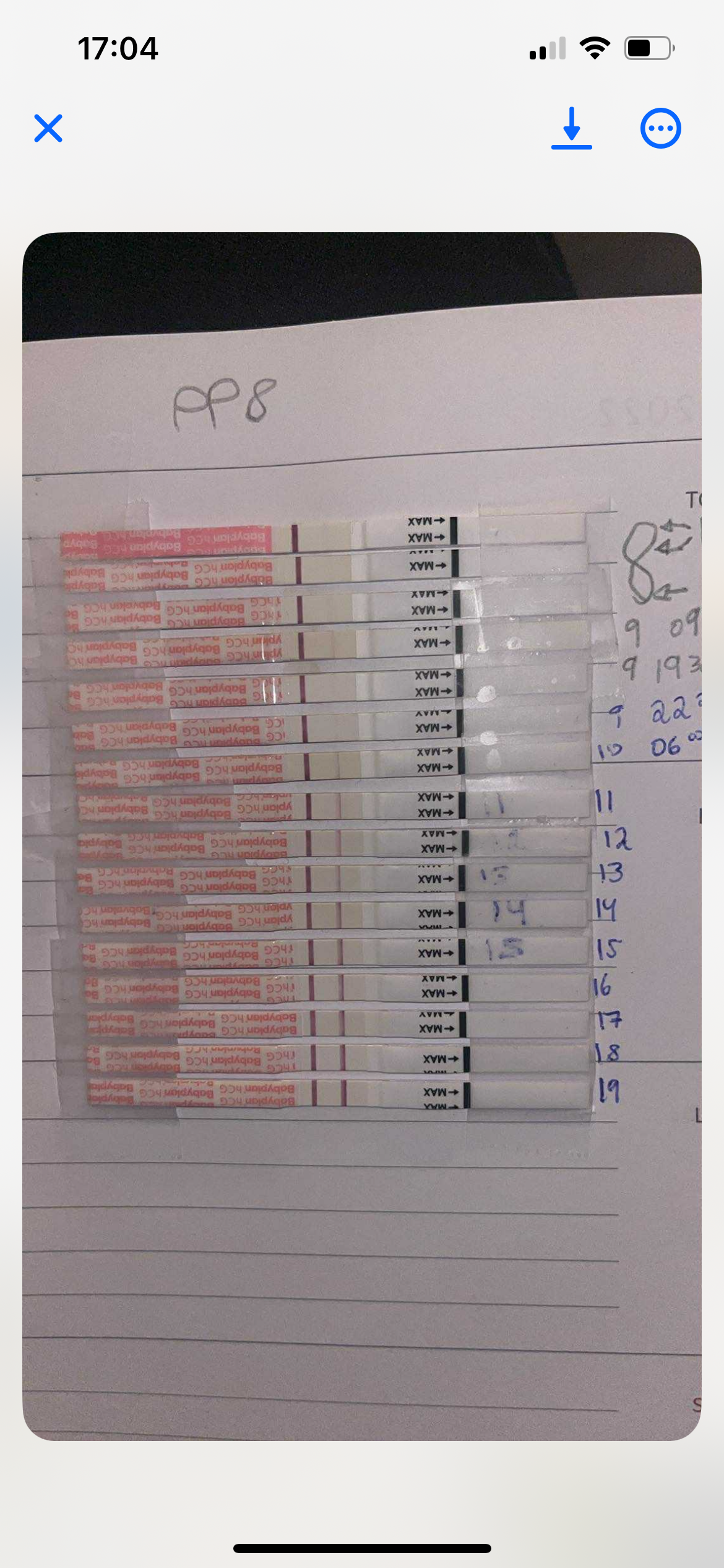 Åh 💔 Når ble testene svakere for deg da? Jeg fikk denne i går ettermiddag som jeg følte var litt sterkere igjen. Har også masse murringer i underlivet, tørste og ekstra sulten, litt kvalme, puppene er ømme og tunge. Men man har kanskje symptomer ved kjemisk også?
