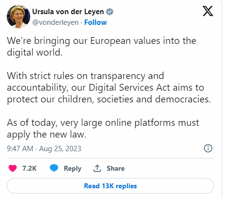 Tunique Skrevet 30. august 2023 #1 Skrevet 30. august 2023 (endret) Fra og med 25. august vil store nettplattformer som opererer i Europa måtte følge reglene fastsatt i Digital Services Act, eller møte en enorm bot på opptil 6 prosent av deres årlige globale inntekter, skriver LifeSiteNews. The Digital Services Act forces companies to rethink their policies on advertising, transparency, and moderation. https://www.theverge.com/23845672/eu-digital-services-act-explained Disse plattformene blir berørt: Alibaba AliExpress Amazon Store Apple App Store Booking.com Facebook Google Play Google Maps Google Shopping Instagram LinkedIn Pinterest Snapchat TikTok Twitter Wikipedia YouTube Zalando Bing Google Search Endret 30. august 2023 av Tunique