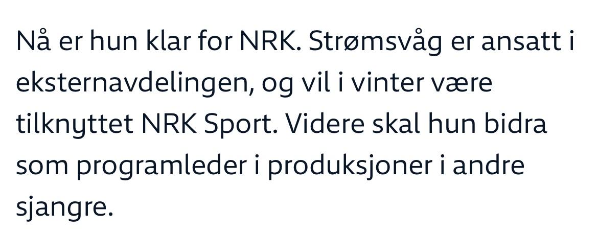 FruRosa Skrevet 14. oktober 2025 #1600 Skrevet 14. oktober 2025 https://www.nrk.no/presse/julie-stromsvag-er-klar-for-nrk-1.16084661 Fra 2022, da Julie kom til NRK. Sitat fra artikkelen (skjermdump): 2 3