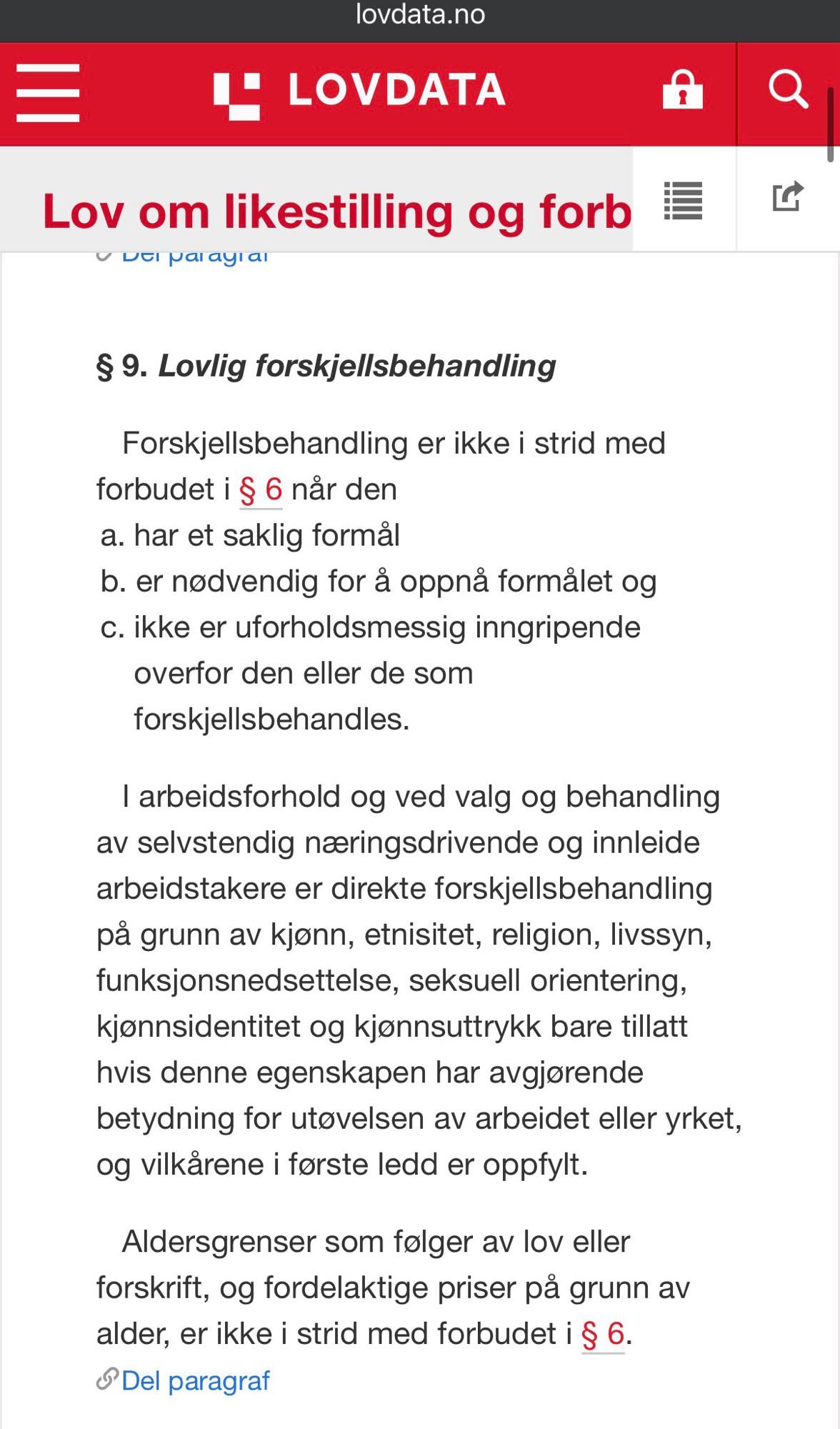 Dette er delt før, og er svært relevant. Det er altså anledning i lovverket til å diskriminere også.
