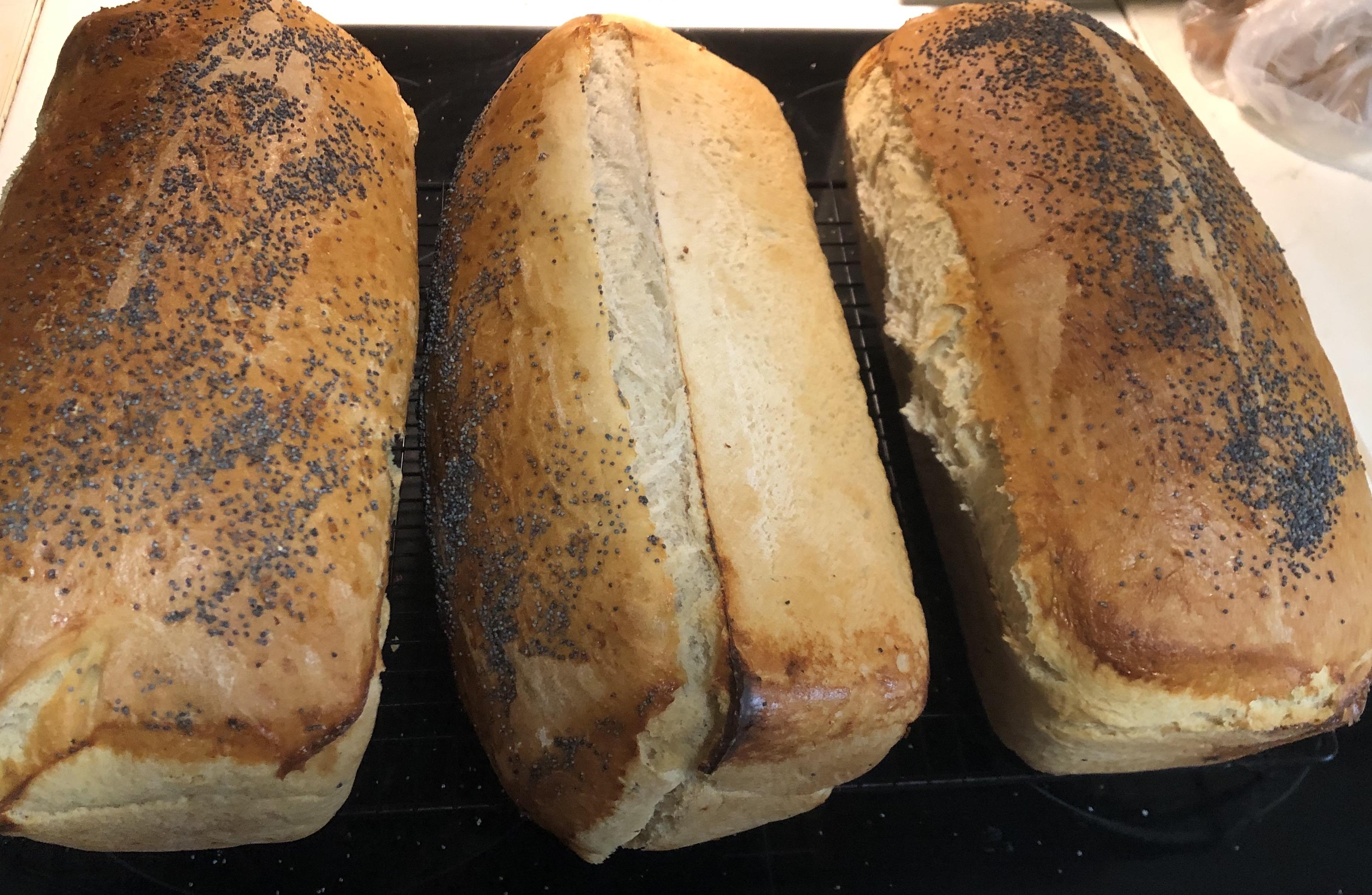 Perine Skrevet 15. august 2024 #1 Skrevet 15. august 2024 Det var tomt for loff her i huset, så jeg bakte 3 nye i dag. Nå er de avkjølt og skåret i skiver på maskin før de gikk i fryseboksen. Jeg bruker Kenwooden og fyller bollen i denne rekkefølgen: 13 dl lunkent vann (eller melk) 1/2 dl matolje eller smør En klype sukker En klype salt (1 ts kardemomme om ønskelig) 1 pose tørrgjær eller 1 pakke oppsmuldret fersk gjær 2 kg hvetemel Maskinen surrer og går i ca 15-20 min, sakte i begynnelsen til alt er blandet, og fortere etterhvert. Deigen blir ganske løs/myk. Deigen hever først i ca 45 min, bakes ut og hever videre i former ca 30 min. Pensles med egg/melk og stekes nederst i ovnen med et bakepapir over i ca 1 time på 190 grader. 1