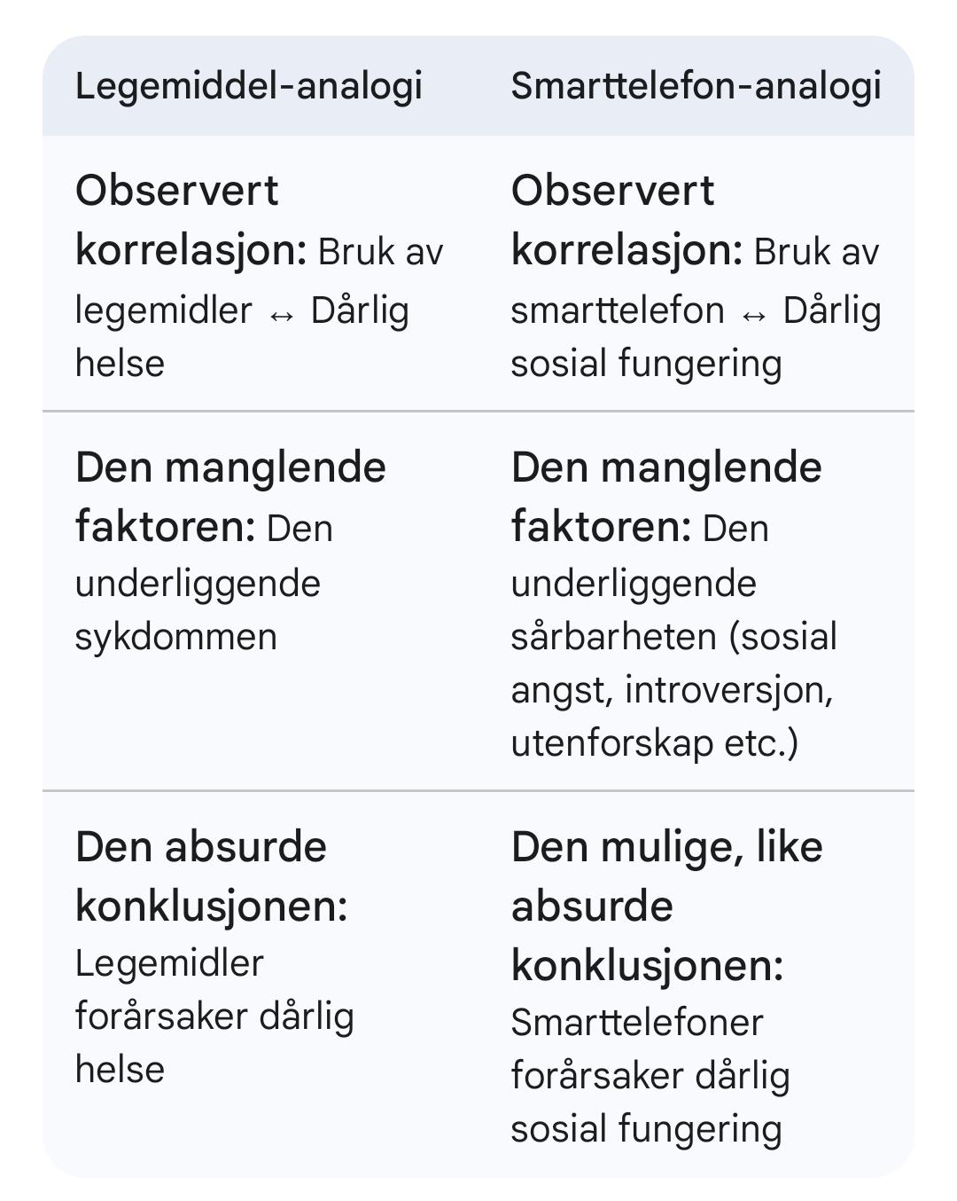Fremmed fugl Skrevet 19. juni #176 Skrevet 19. juni AnonymBruker skrev (4 timer siden): Som jeg skrev: Igjen, bruk av MOBIL er ikke automatisk betydning av at barn ser på TikTok, porno, kjøper dop eller befinner seg på ting som de ikke kan. Er jo den største selvfølge at media skriver om TikTok bruk eller dårlig mobilbruk fordi det får leserklikk. Hvor mange artikler får vi om foreldre som håndterer dette greit, nada, null og niks fordi det er ikke engasjerende. For foreldre som ikke klarer å styre dette eller sette rammer så kan jeg til dels være enig. Men bare fordi det finnes voldtektsmenn rundt i hele landet så kan ikke jeg sende datteren min på butikken for å kjøpe en is aleine. Vi må slutte med dette hva/hvis scenarioene og ta selvstendige valg for våre barn selv. Så svaret mitt står like støtt. Anonymkode: 9a77c...eeb Det er en sterk sammenheng mellom økt spising av iskrem, og drukning. Forskning på mobilbruk og barn finner like robuste resultater som det ovenfor. Finnes null vitenskaplig støtte for at det skal påvirke barn positivt å ikke la dem ha tilgang til en liten bærbar datamaskin med touchskjerm når dem går på barneskolen. Kan ta en liten illustrasjon på det som folk tror er god vitenskap. 1