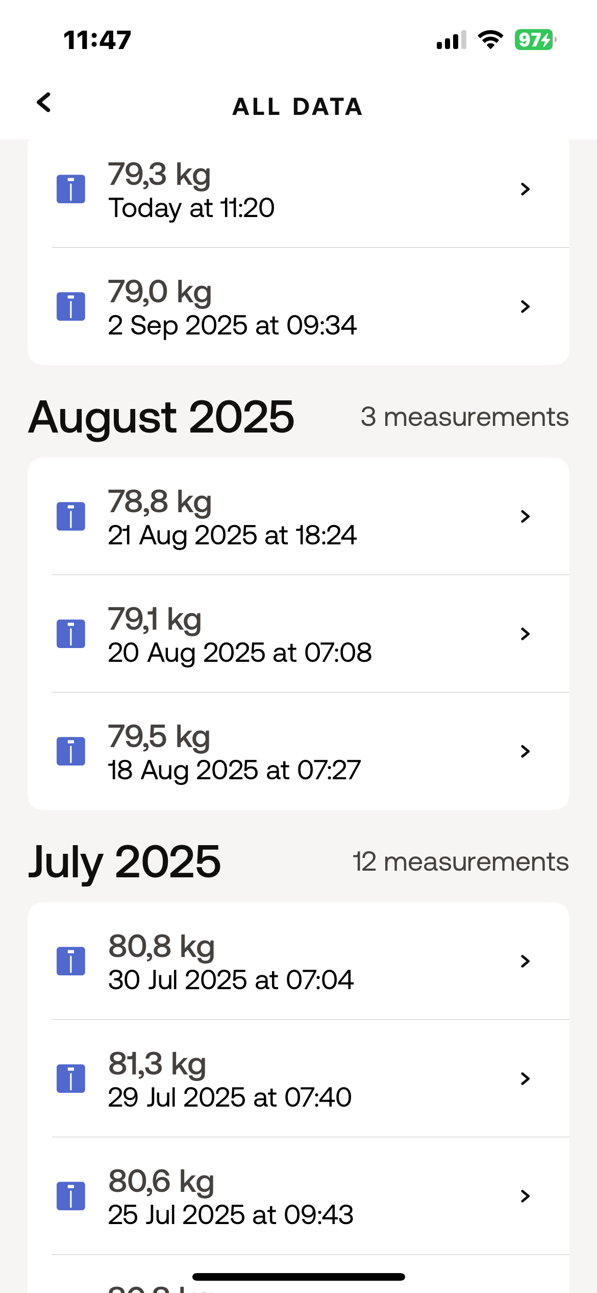 AnonymBruker Skrevet fredag kl. 06:49 #95 Skrevet fredag kl. 06:49 AnonymBruker skrev (På 1.10.2025 den 7.00): Tok sprøyte nr 2 av 0,5 mg i dag. Spent på hvordan bivirkningene kicker inn. Har hatt ganske løs mage etter sprøyte én (inkludert rett før jeg skulle boarde et fly, som var ganske stressende 🙈). Har ellers vært noen dager i London, og spent på hvordan måltider ute og mindre trening (dog masse gåing!) påvirket veiedagen i morgen. Men vet i alle fall at neste uke blir bedre. - I Anonymkode: 90818...8ab Det gikk mye bedre med veing enn jeg trodde. Ned 0,3 kg, som i alle fall ikke var opp, da. Det betyr også at jeg nå er under 70 kg, for første gang på over ti år! Det var sykt gøy å se tallet begynne med 6. - I Anonymkode: 90818...8ab 2