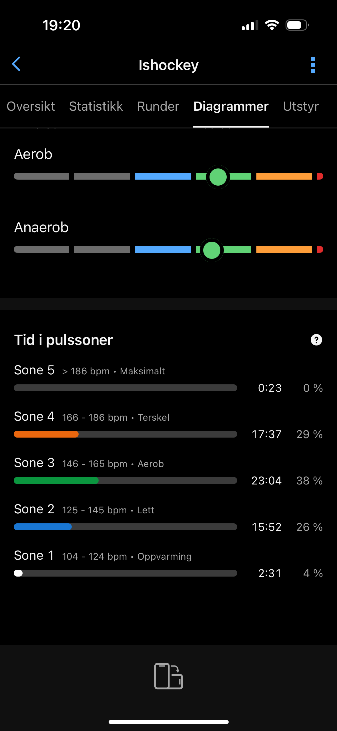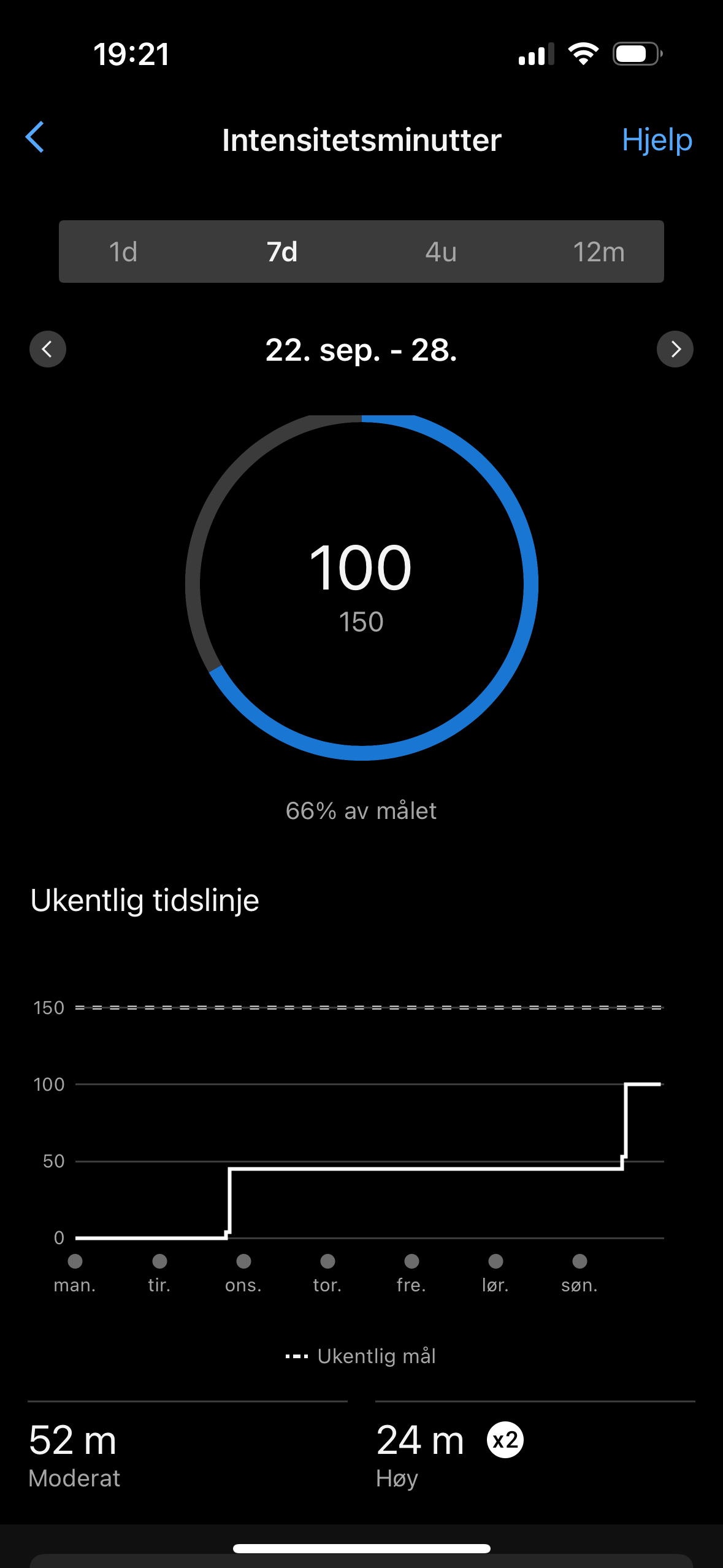 AnonymBruker Skrevet 2 timer siden #1 Skrevet 2 timer siden Er det noen som forstår beregningen av intensitetsminuttene til Garmin? Skulle tro de brukte pulssonene til å beregne, men hva er grensen da? Sone 4 bør jo være intense minutter eller? Men neida… ikke hos meg. Forrige uke(uken før de bildene jeg har lagt ved) hadde jeg fler minutter i sone 5, mange i sone 4, men ikke spesiell uttelling i intensitetsminutter. Vedlagt er to økter, en kondisjonsøkt på treningssenter, og en ishockeyøkt (oppvarming, skøyteteknisk/oppspill, aktivt spill. Nesten uansett hvor hardt jeg trener, når jeg aldri de 150 minuttene som anbefales ukentlig. Hvordan i alle dager skal dette gå opp? 😂 jeg trener som regel 2-3 ganger i uken, styrkeøkter, kondisjonsøkter, hockeyøkter. Jeg ser på meg selv som over middels aktiv med trening, men i følge Garmin når jeg ikke opp til de ukentlige anbefalingene for den gjengse inaktive latsabb en gang Finner ingen måter å endre intensitetsminutt-målingene, annet enn å stille inn mål for antall minutter… Er det noen som er klokere enn meg? Hvordan måles minuttene? Anonymkode: 3120f...0fb