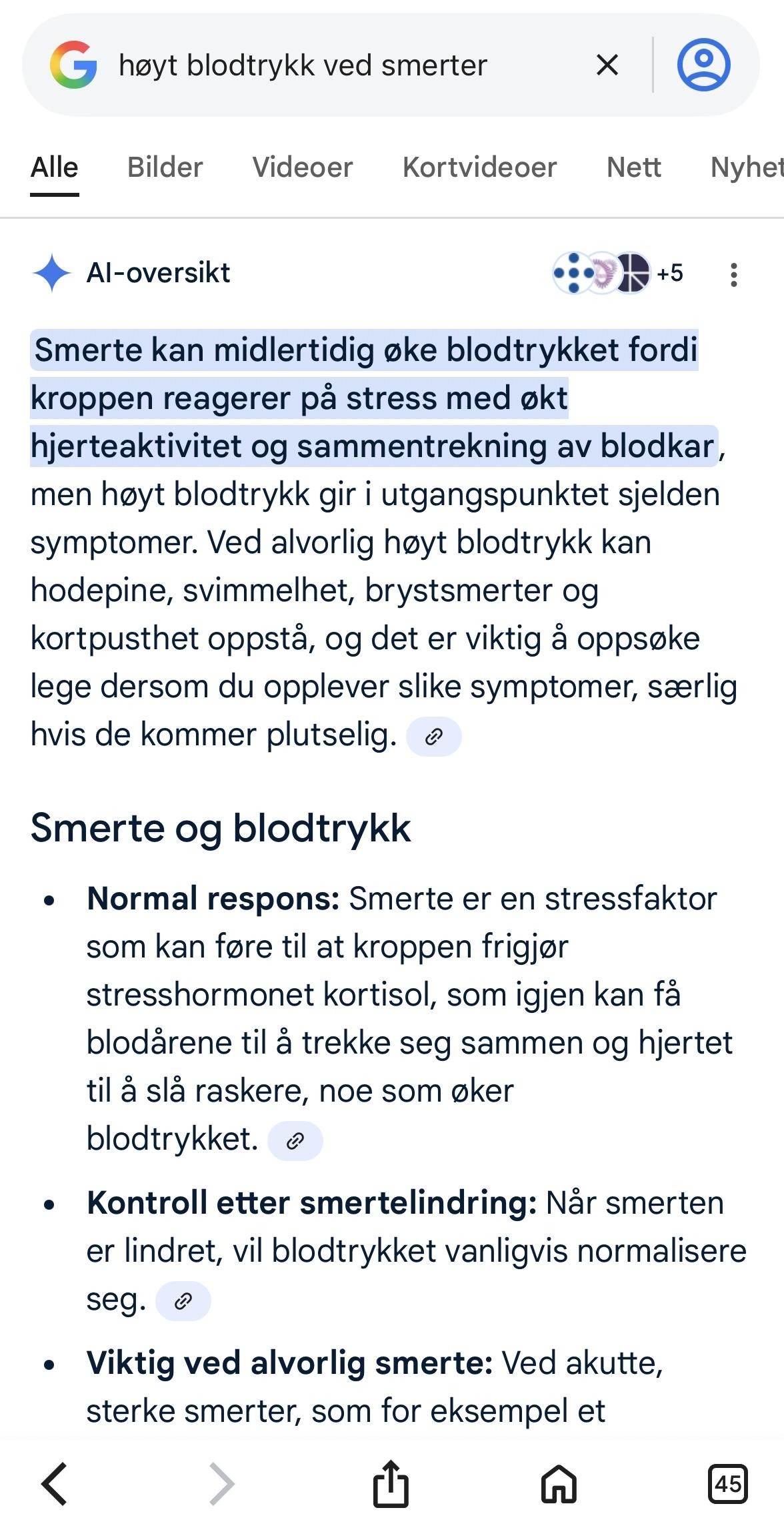 AnonymBruker Skrevet 1 time siden #2 Skrevet 1 time siden Smerte kan øke blodtrykket. Samme med angst. Anonymkode: ab492...3c9
