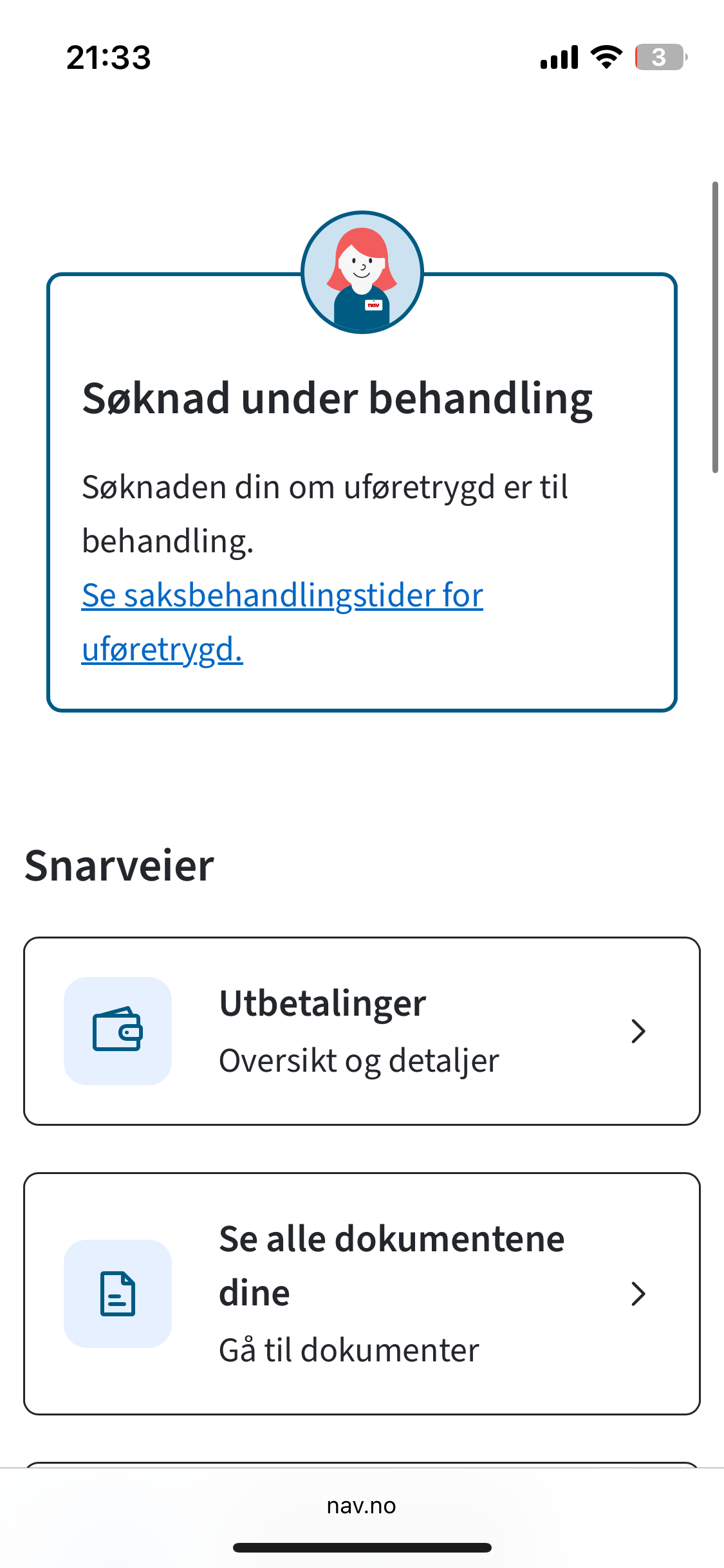 mommyaka Skrevet i går, 10:58 #6 Skrevet i går, 10:58 AnonymBruker skrev (På 8.10.2025 den 12.52): Jeg har en søknad liggende inne. Før har jeg kunnet logge inn på NAV, og få opp et alternativ som heter noe ala «se din sak» under der det stod «se saksbehandlingstider for uføretrygd». Nå er «se din sak» borte. Er det det hos dere også?? Anonymkode: 5b702...d78 De har tatt den vekk dessverre:( snakket med Nav nå