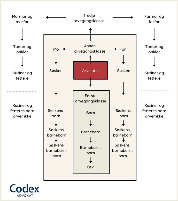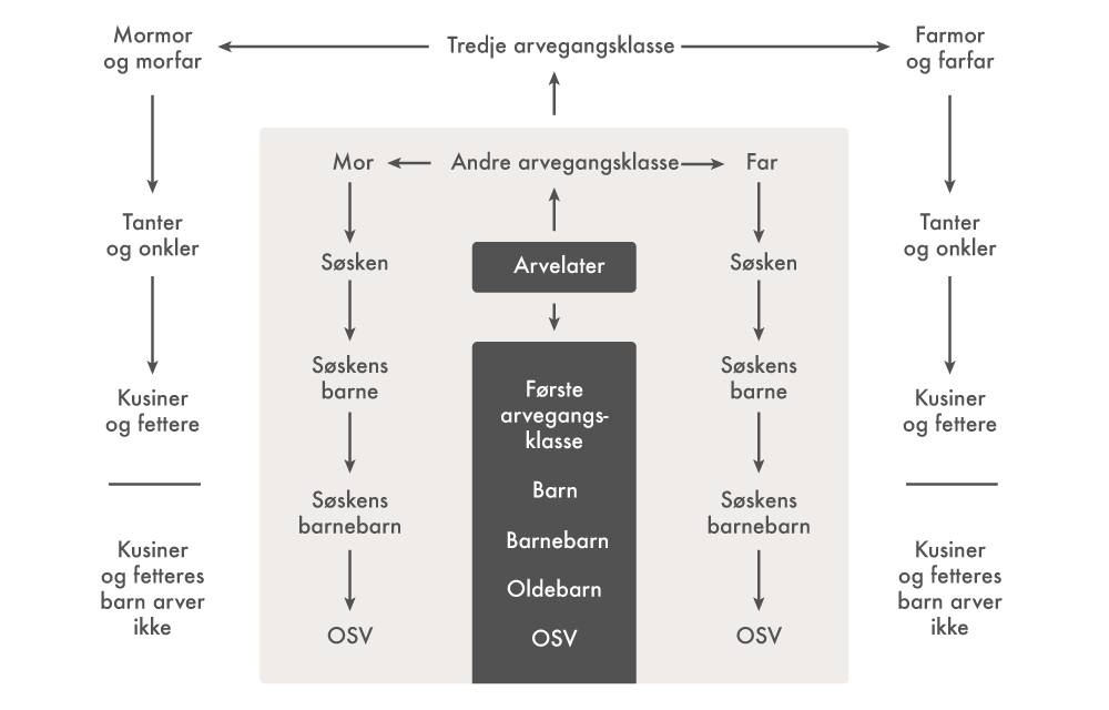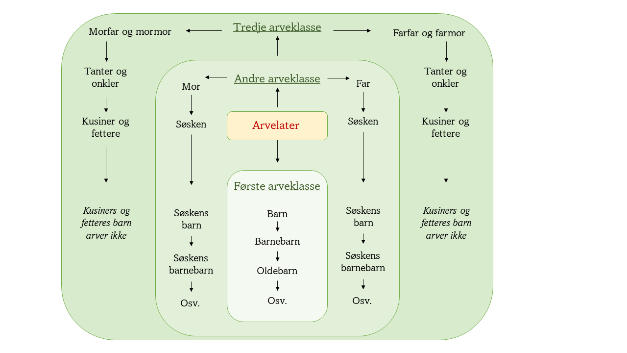 AnonymBruker Skrevet 13. oktober #27 Skrevet 13. oktober Mange år siden jeg hadde dette på skolen, men mener at ingen av dem (hverken søskenbarn eller søskenbarnsbarn) har arverett. De er ikke i arverekken din så det er hundre prosent opp til deg hvilken gaver du velger å gi eller etterlate. Rettferdig, urettferdig: i følge loven har de ikke krav på noe som helst. Søkte opp på chatgpt og kom frem til at det bekreftet det jeg trodde. Ellers om du vil ha sakkyndig hjelp må du snakke med en advokat. 🔹 Arverekkefølgen uten testamente Etter Arveloven (lov om arv og dødsboskifte) er det tre arveklasser: 1. Første arveklasse: Barn, barnebarn, oldebarn osv. 2. Andre arveklasse: Foreldre, søsken, nieser og nevøer (altså barna til dine søsken). 3. Tredje arveklasse: Besteforeldre og deres barn (altså tanter og onkler). 👉 Søskenbarn (barna til tanter og onkler) tilhører ikke noen arveklasse. De har derfor ingen lovbestemt arverett. 🔹 Unntak Hvis du ikke har arvinger i noen av disse tre klassene, og ikke har skrevet testamente, går arven til staten. Men du kan bestemme i testamente at søskenbarn (eller hvem som helst) skal arve deg. Anonymkode: c7330...e8d 3