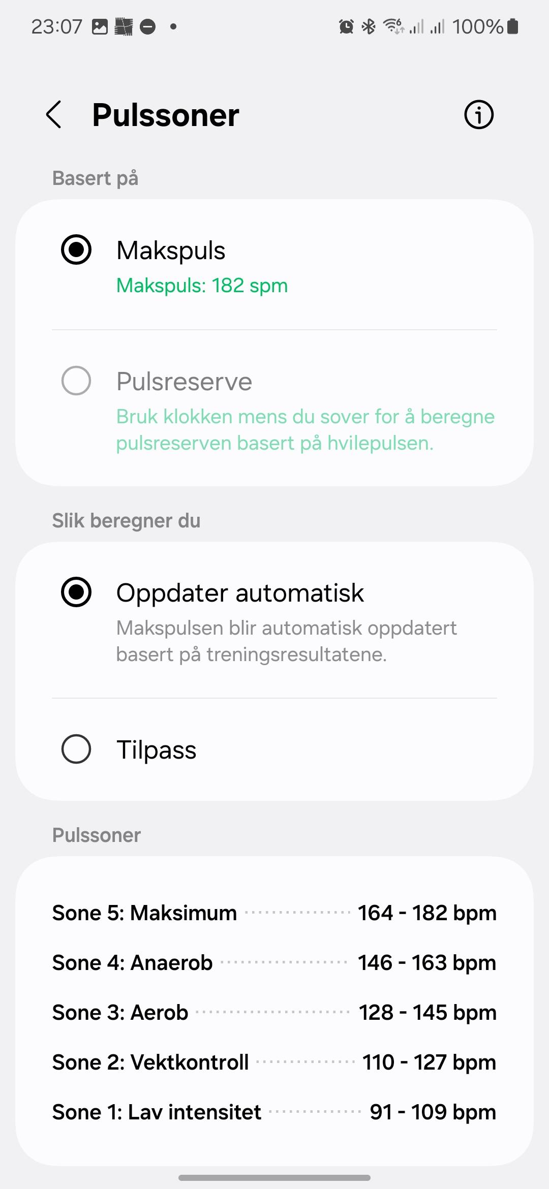 AnonymBruker Skrevet onsdag kl. 19:23 #4 Skrevet onsdag kl. 19:23 AnonymBruker skrev (6 timer siden): Har ikke den mest avanserte klokka så den viser ikke sonene. Men regnet meg ut til at maks puls er ca 183 hvis jeg har regnet riktig. Hva er da sone 1,2,3 og 4? Anonymkode: c4e7e...6df Makspuls finner du ved å presse deg hardt. Jeg har makspuls på 206, men jeg er ikke 14 år... Det finnes flere måter å dele inn i pulssoner, de vanligste er etter prosent av makspuls og HRR(Heart rate reserve). Anonymkode: 3e7ae...428 1
