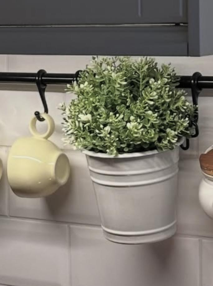 Jeg har sett på Instagram dette her og jeg vil gjerne ha det. Har allerede slik veggstang på flisene på kjøkkenet og vil gjerne ha ei potte hengende med ei plante, for å åpne opp litt hjørnet hvor jeg har stanga.