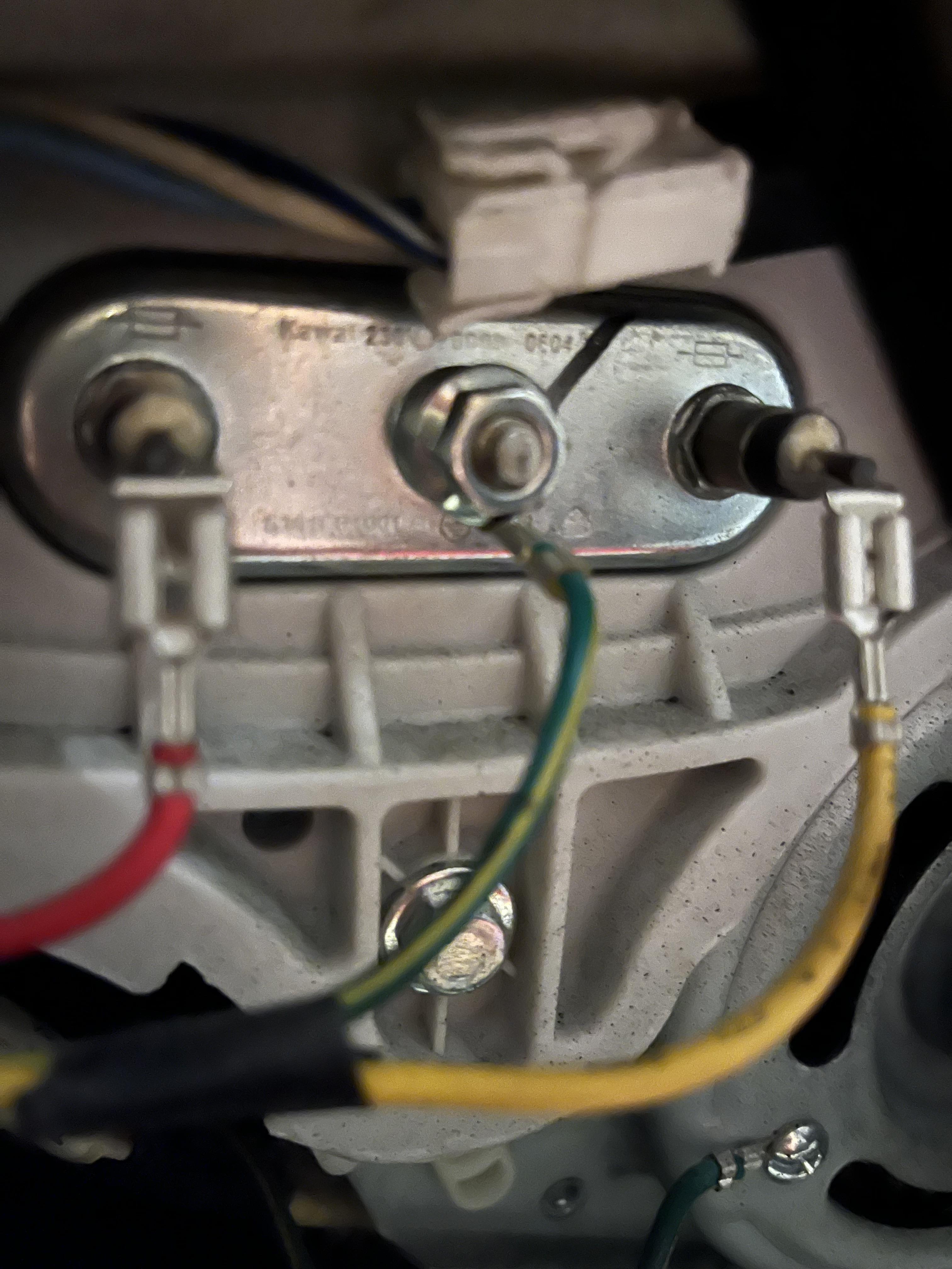 På noen instruksjonsvideoer på YouTube napper de bare ut den røde og den gule ledningen men de virker å sitte fast på min maskin. Det er altså det varmeelementet jeg ønsker å demontere for å se om jeg kan nå det som sitter fast via den tilgangen. Noen som ser hva jeg skal gjøre? 😅😅