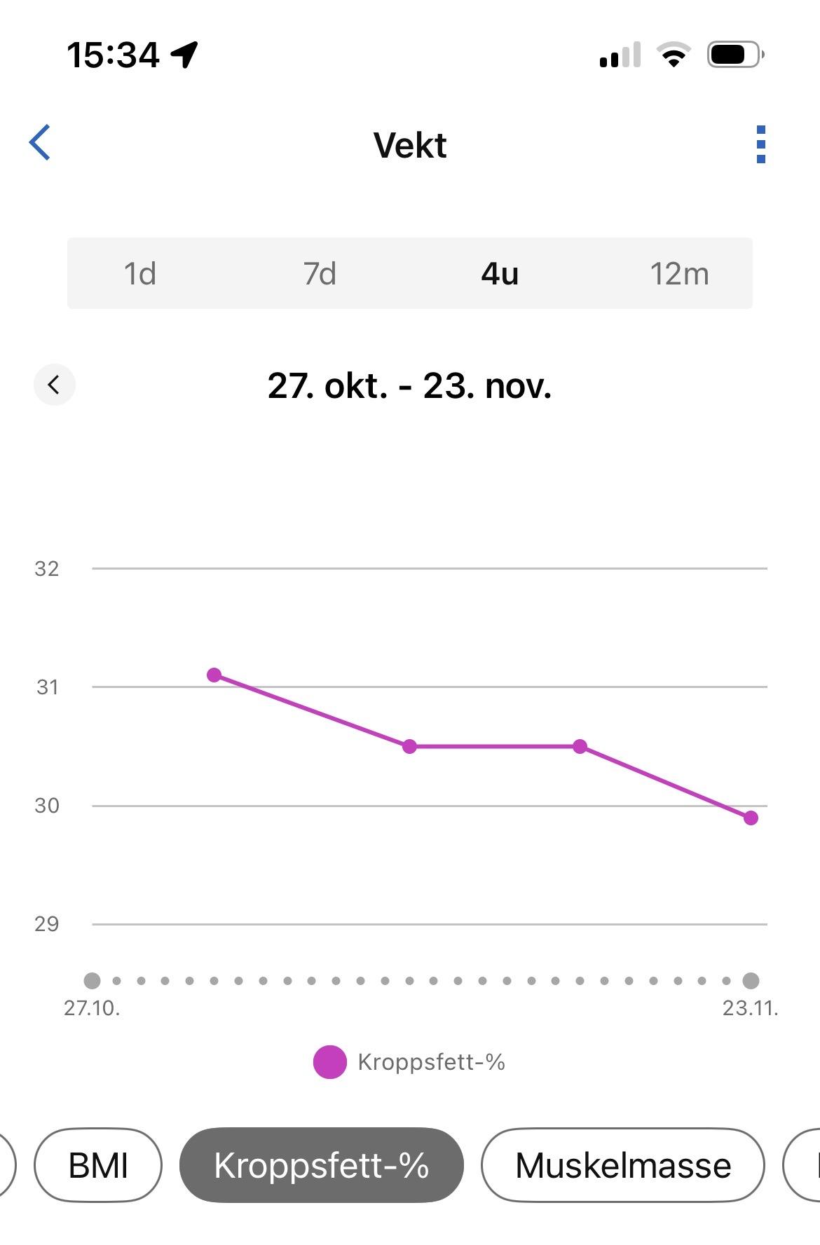 våren14 Skrevet 16. november Forfatter #15 Skrevet 16. november Et kjapt googl søk tilsier å ikke legge spesielt mye vekt på endring i benmasse ja, haha. Skjønner jo det. Så egentlig er alt status quo kanskje. Eller feil-lest av vekta. Samme det, jeg ser ikke så mye på enkeltmålinger, men er interessert i det som skjer over tid. Burde veid hver dag og ikke en gang i uka. Men, med to små jenter i hus vil ikke jeg lære dem å stå på vekta hele tiden. Jeg synes det er interessant å se om jeg kan få ned fettprosenten min, men slikt skjønner ikke de. Derfor sjekker jeg i hemmelighet en morgen i helgene, haha. Og derfor ikke ideelt å se på en enkeltmåling egentlig. MEN, det jeg skulle si som jeg glemte! Var, at plutselig er Garmin happy med de 30,5% mine og ber meg opprettholde, og etter dagens løpetur og veiing slo den til med en kondisjonsalder på 38,5 år Gøy når man er 43! Ikke noe som å være i 30-årene igjen! Så…hva enn jeg gjør…så er det nok BRA for meg. Og allikevel spennende å se hva som vil evt skje frem til nyttår mtp kroppen med periodisk faste. Jeg merker jo veldig godt at midjen er smalere, at lårene er smalere og at magen er flatere. Tendenser til 6-pack i øvre deler der nå. Trener mye mage og kjerne, så ikke så rart det synes når fettet utenpå tydeligvis er redusert. Så det visuelle er enda tydeligere enn tallene på vekta vil jeg si. Kroppen føles fastere i fisken! Og det betyr jo faktisk mer enn vekten som er så som så til å stole på kanskje…