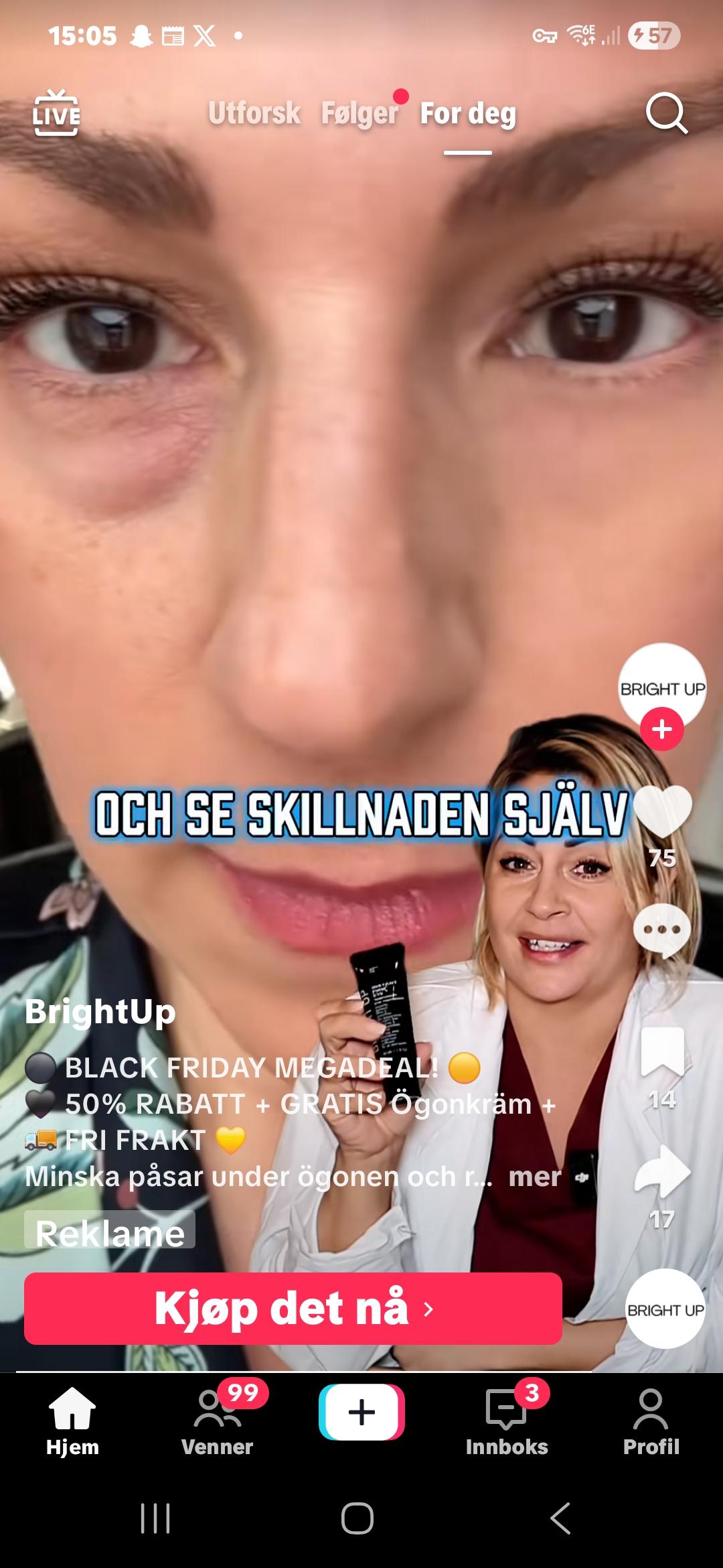 AnonymBruker Skrevet 2 timer siden #2 Skrevet 2 timer siden Hvis du vil ha et skikkelig svar så må du gi informasjon om hva slags produkt det gjelder. Du kan ikke forvente at vi skal finne ut av dette selv. Men, generelt, hvis det loves mirakler ved bruk at et produkt, er det god grunn til å være skeptisk. Ut ifra skjermbildet så kan man så at høyre øyenbryn er mindre definert enn venstre, noe som gir meg mistanke om at det er filter. Anonymkode: 17525...94d 1 4