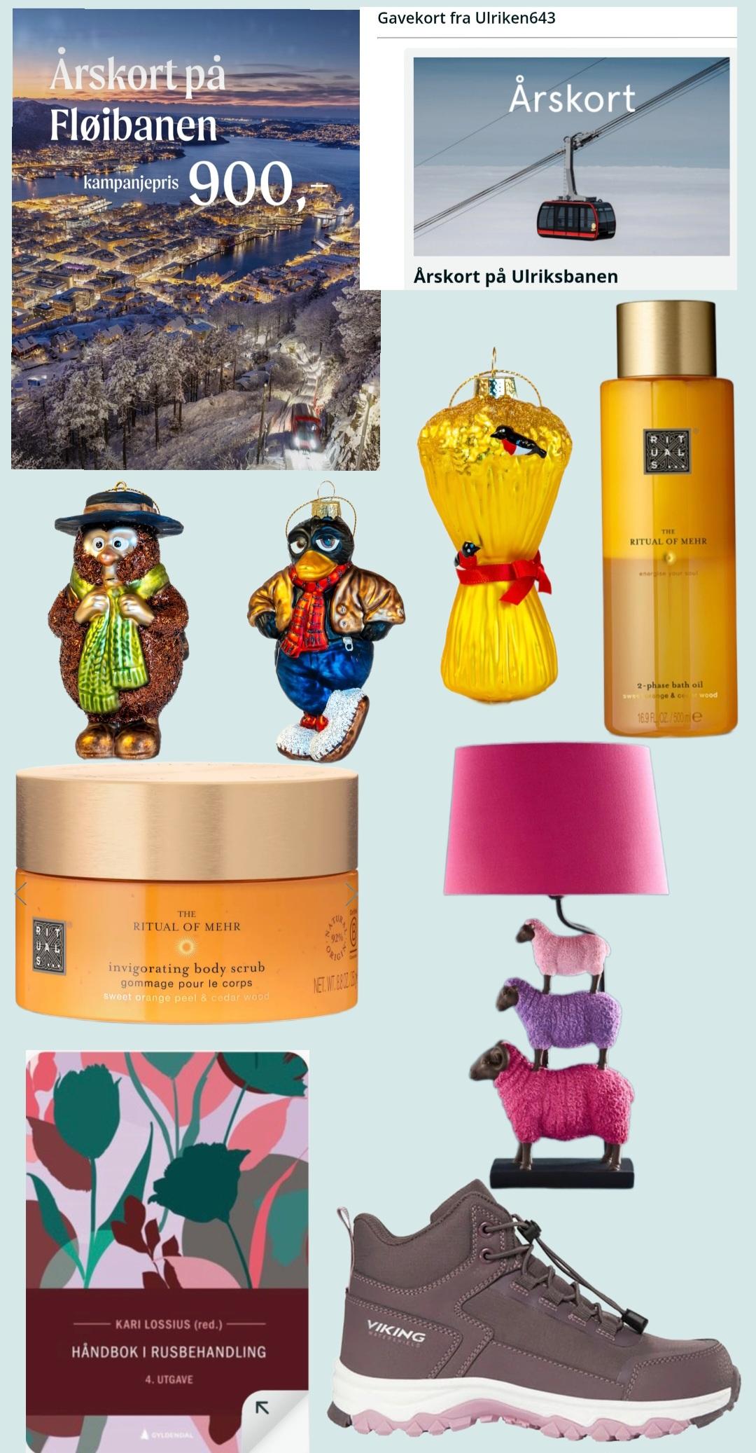 skreppamedleppa Skrevet 17 timer siden #9 Skrevet 17 timer siden I år er det alt ifra nye hodeputer, årskort på Fløybanen og Ulriken, ymse julekuler, klær, sko, fagbok "håndbok i rusbehandling", velvære produkter og lampe blant annet. + at jeg ønsker penger til reprasjon av en av mine kjæreste friluftsjakker (som jeg nekter å gi slipp på helt enda). 2 1