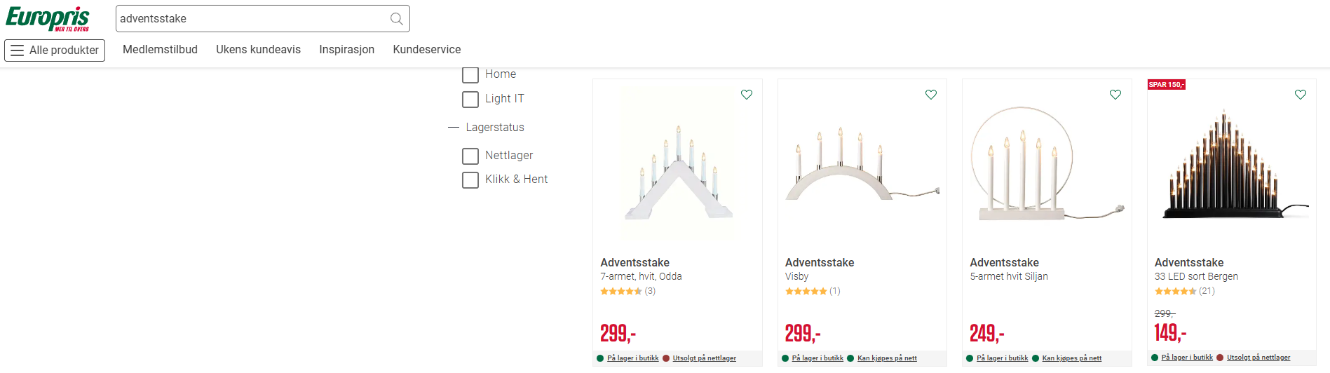 AnonymBruker Skrevet torsdag kl. 10:50 #12 Skrevet torsdag kl. 10:50 AnonymBruker skrev (6 minutter siden): Så 1200 var originalpris for 4 adventsstaker på Europris?? Anonymkode: 7b9f8...c4d 300,- for en adventsstake er ikke unormalt det. Tipper det er den til høyre som den du siterte har kjøpt. Anonymkode: 4108e...43f 3