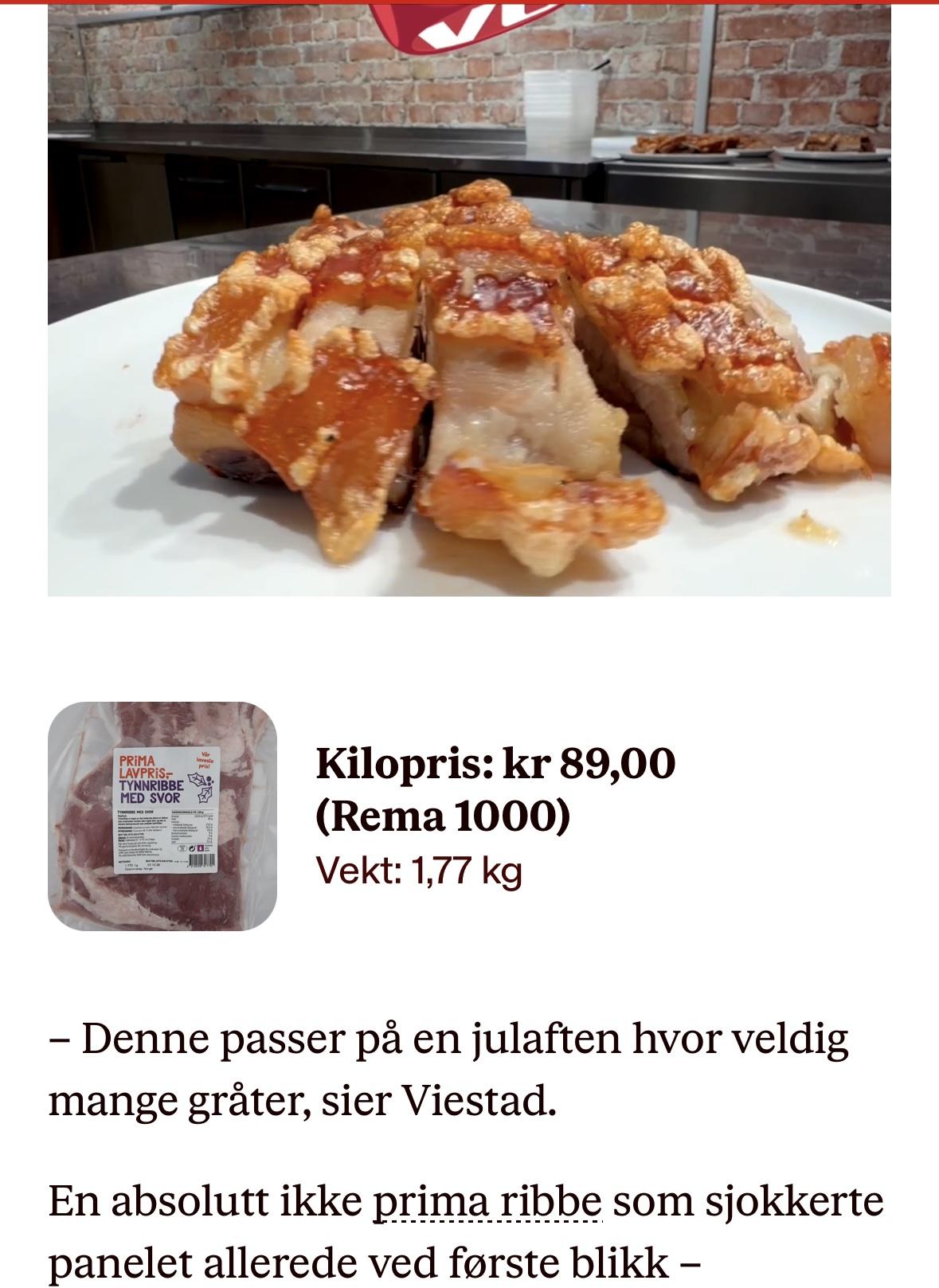SpalteK Skrevet onsdag kl. 08:04 #4 Skrevet onsdag kl. 08:04 En ribbetest har ingenting for seg da ingen griser er like... Det viktigste er å se på stykket du kjøper selv. Finner du et stykke med din foretrukne marmorering og andel fett/kjøtt så blir det bra. Unngå ferdig krydrede varianter. 3