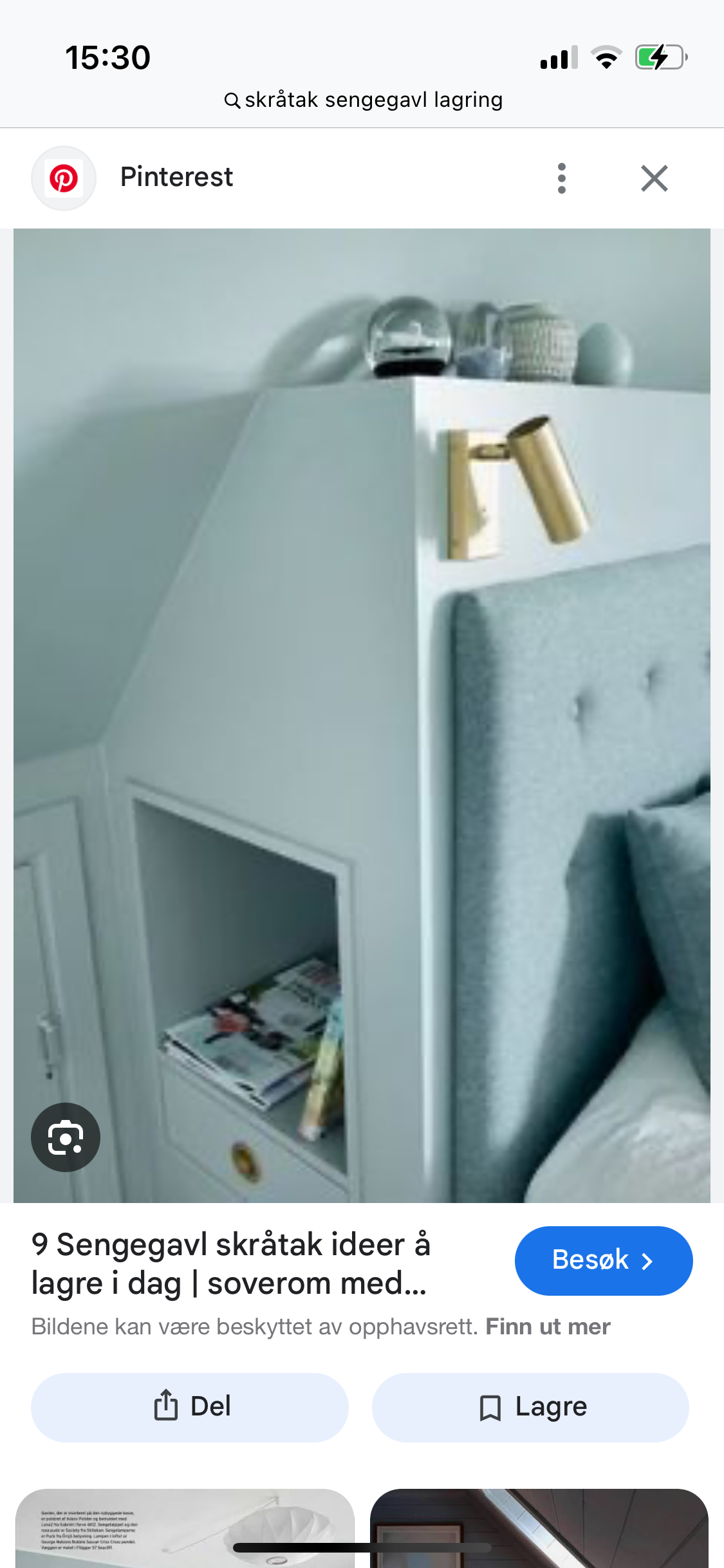 AnonymBruker Skrevet onsdag kl. 14:29 #2 Skrevet onsdag kl. 14:29 Men må dere ha sengen helt inntil bakveggen der da? Er rommet stort nok så kan du trekke sengen lenger ut fra veggen, slik at det ikke blir fullt så lavt rett over hodet. Sett opp en sengegavvl og lag lagringsplass bak sengegavl? Anonymkode: a053f...c65 1
