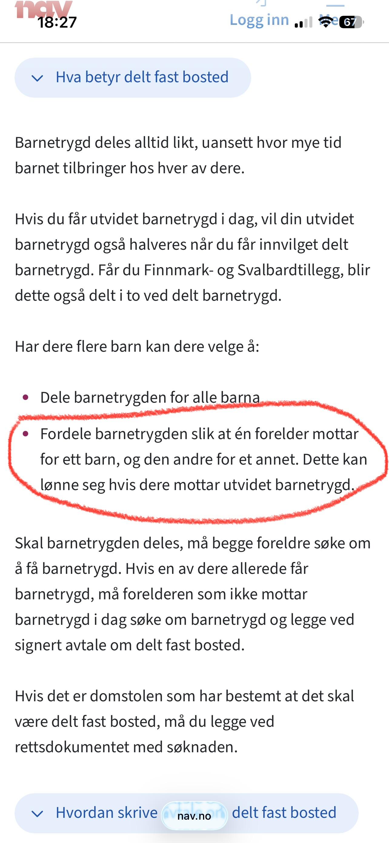 AnonymBruker Skrevet onsdag kl. 11:52 #11 Skrevet onsdag kl. 11:52 AnonymBruker skrev (42 minutter siden): Nei! Mitt barn er folkeregistert hos meg, delt fast bosted og jeg har mest samvær. Begge får delt utvidet barnetrygd. Hadde ikke den ene søkt, hadde den andre som søkte, full utvidet barnetrygd. Ikke gjett. Anonymkode: 66b76...9ed Delt ja, ikke en hver Anonymkode: 732a6...004