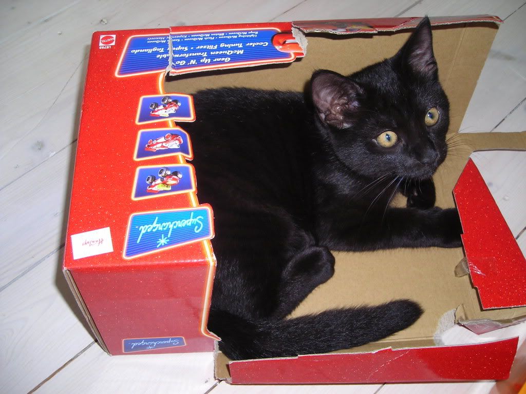Her ser dere rampegutten Lenny har funnet seg til rette i eska til lekebilen som jeg kjøpte til minsten i London... :)