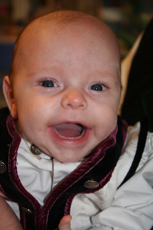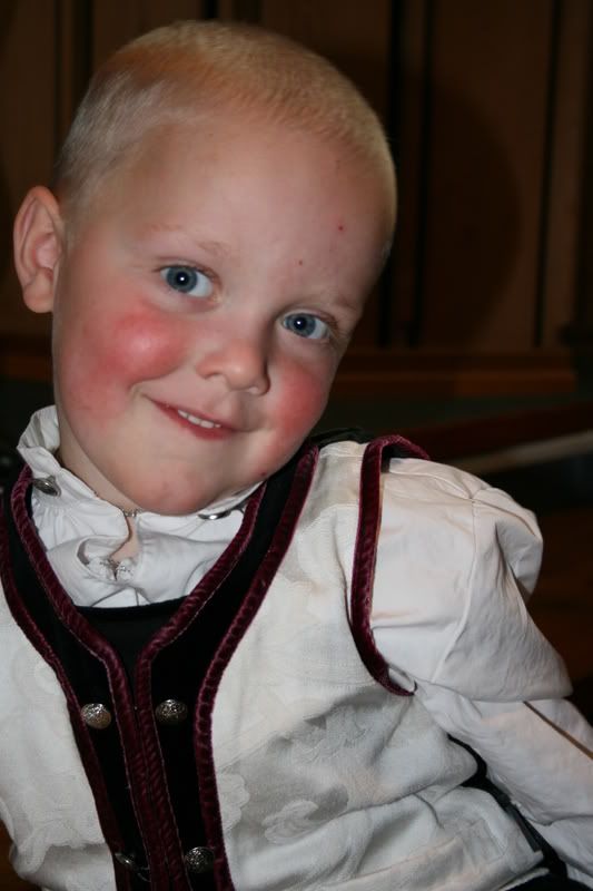 MzS Skrevet 15. juli 2008 #5543 Skrevet 15. juli 2008 ENDELIG på nett igjen! Duste-Tele2... Har hatt SERIØSE abstinenser! Godt å se at det fortsatt skravles like mye her Her har lillegutt rullet 2 ganger fra mage til rygg, men tror ikke han kommer til å gidde å rulle fra rygg til mage på lenge enda. SÅ moro er det ikke å ligge på magen - selv om han er blitt veldig flink til det, og ligger lange stunder av gangen og ser på seg selv i speilet. Han sover nå fra ca 20 til ca 8 med en mating i 3-tida mellom. Kjempedeilig! Så nå tar jeg og mannen annenhver natt, siden han har ferie nå. Legger seg like lett som alltid, og er stort sett bare blid og fornøyd. Så ingen klaging her i gården Har begynt med smaksprøver på forskjellige ting, med varierende resultat... Grøt er IKKE godt, og spyttes fort ut igjen. Både mais og ris. Men det går til nød ned som velling. Fruktmos er litt bedre da, og i dag fant vi endelig noe han likte! Den økologiske fra Hipp med eple, jordbær og banan er det eneste som ikke har blitt spyttet ut hittil Han fikk to små skjeer, turte ikke mer da vi bare har holdt på noen dager. Men har ikke merket noe magevondt på det han har fått hittil hvertfall. Så nydelig dåpsbarn folkens Vi har dåp nå på søndag, var i dåpssamtale i dag. Men er ikke akkurat i rute da, har huset fullt av snekkere som bytter kledning og vinduer, og det ser ikke UT utenfor her. Snakk om bra timing... Men vi får håpe det blir bra likevel. Heldigvis er det jo bare nærmeste familie som skal komme, og de bærer vel over med oss får man tro.