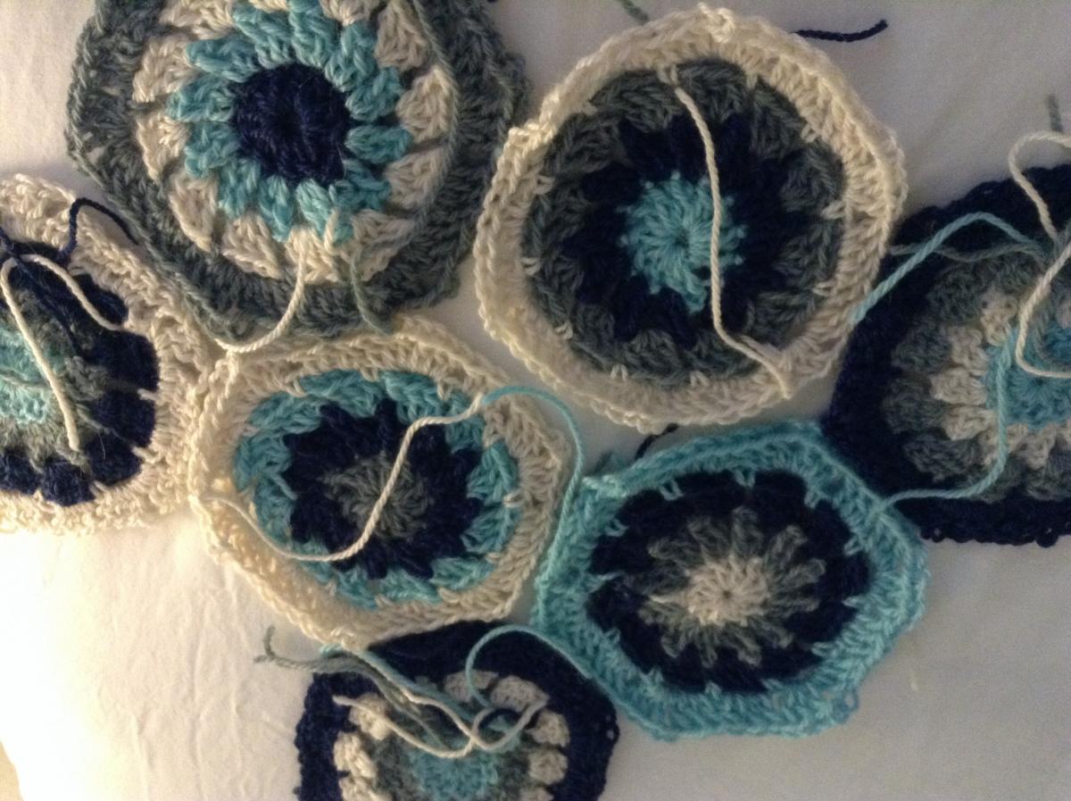 Anje Skrevet 25. august 2014 Forfatter #916 Skrevet 25. august 2014 Har startet på nytt pleddprosjekt (er jo så høstlig ute). Blåtoner.