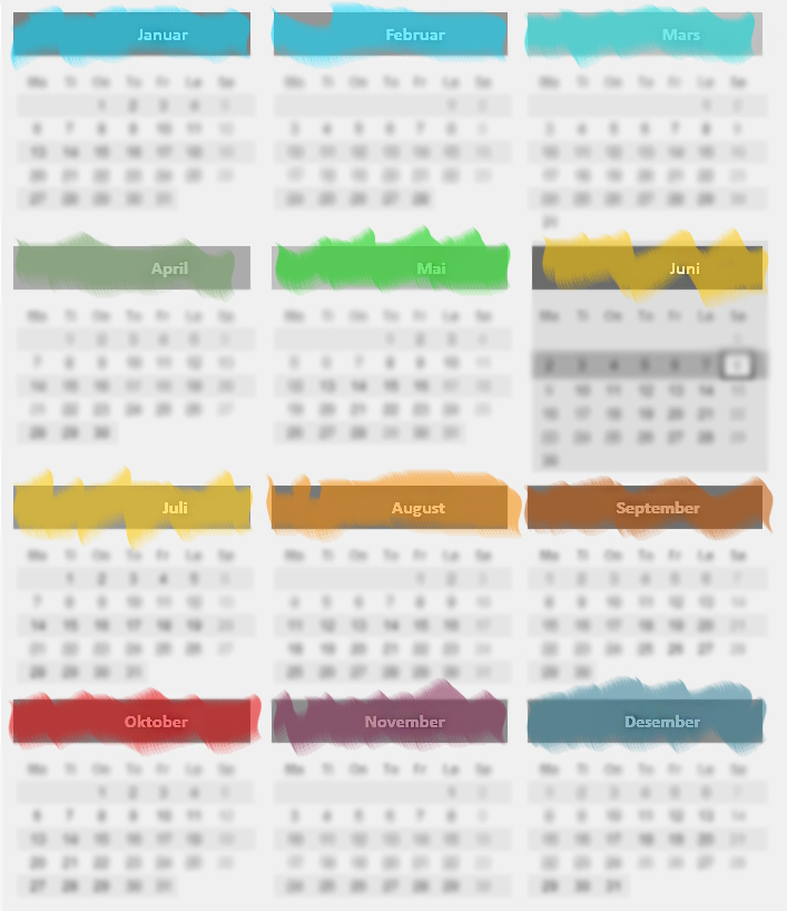 PaperFlower Skrevet 8. juni 2014 #5 Skrevet 8. juni 2014 (endret) Oi, interessant tråd! Vi brukte å ha slike svære kalendere når jeg var liten, med tre måneder på hver linje - 4 linjer nedover. Mener å huske de var blå og hvite... Den type kalender har siden vært slik jeg har sett for meg året, bare at selve dagene/datoene er uklare. Og i tillegg ser jeg gjerne farger som passer til de forskjellige månedene, så det jeg ser for meg blir noe slikt: Endret 8. juni 2014 av PaperFlower 1