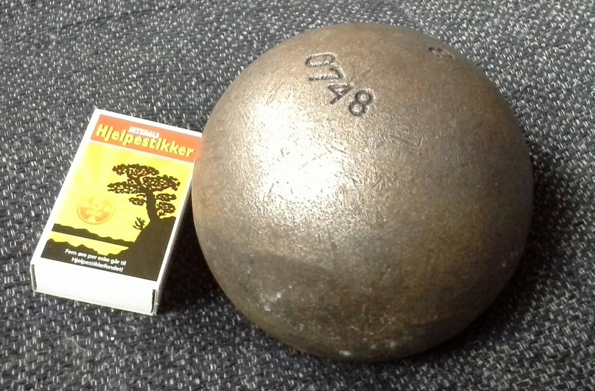 Lemming Skrevet 20. juni 2014 #1 Skrevet 20. juni 2014 Sønn og noen andre unger fant denne metallkula ute. Den er VELDIG tung! Vi lurer fælt på hva den hører til! Any clue??