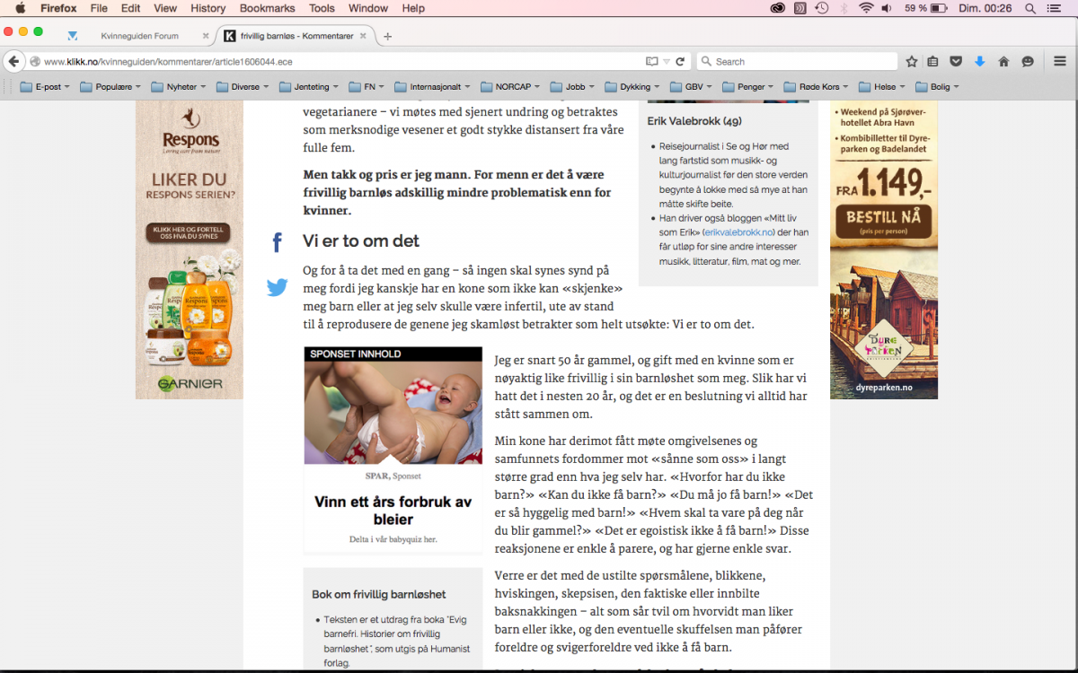 Sheherasade Skrevet 29. august 2015 #1 Skrevet 29. august 2015 I Kvinneguidens artikkel om å være frivillig barnløs http://www.klikk.no/kvinneguiden/kommentarer/article1606044.ece dukker plutselig denne reklamen opp: 3